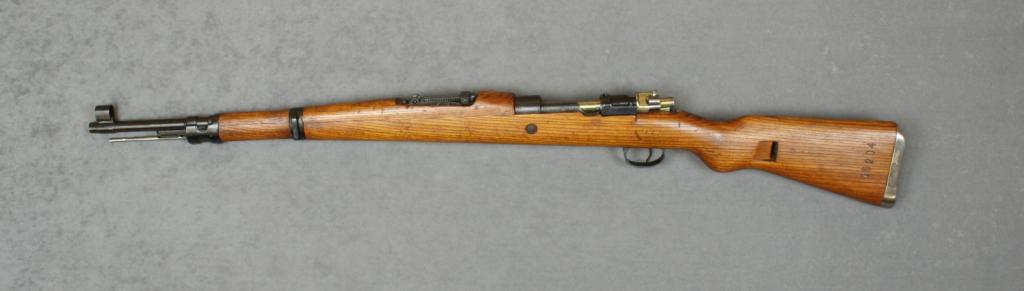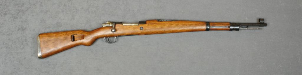 Mauser Model 48 bolt-action military rifle, import marked, 8mm Mauser, 24” barrel, military black finish, wood stock, #M16204. This gun is in overall very good condition as re-furbished, fair bore, action, markingsand very good wood; with bayonet, scabbard, sling, double leather pouch. Est.: $125-$250.