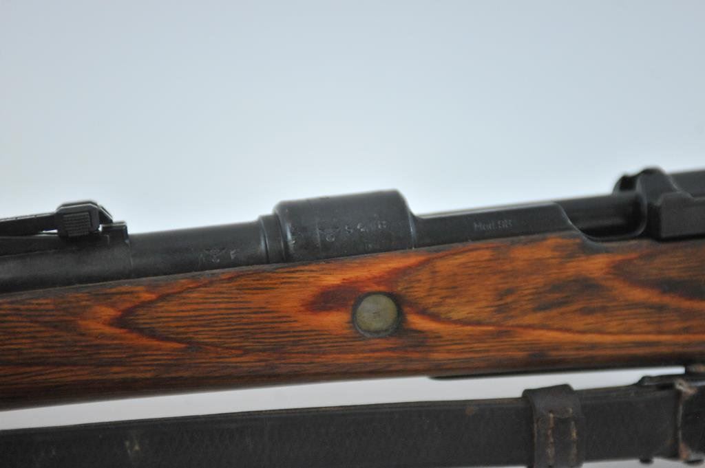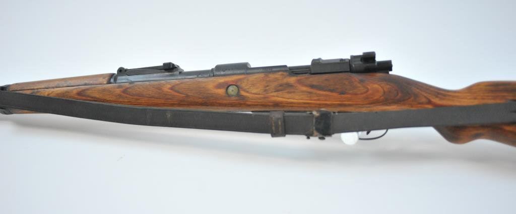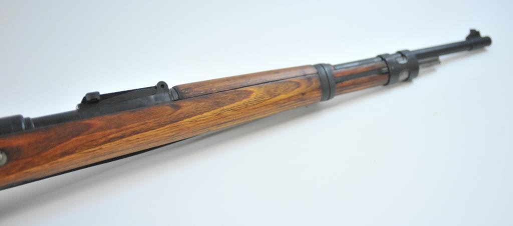 U code and 43 date on the breech, S/N 5418. The bolt and small parts are not matching but remarked with serial number scratched on the bolt and stamped into the wood and on trigger guard. An arsenal re-issue for 2nd country post WWII. No import marks. Good action and very good bore. German sling included. Very good plus as arsenal re-built. Possibly Israel purchase post war. (C&R) Est.: $300-$600