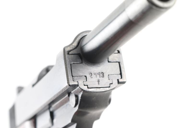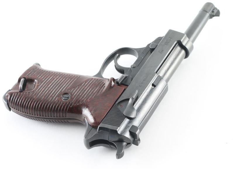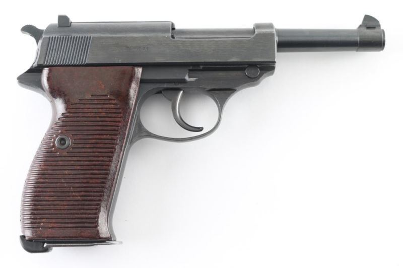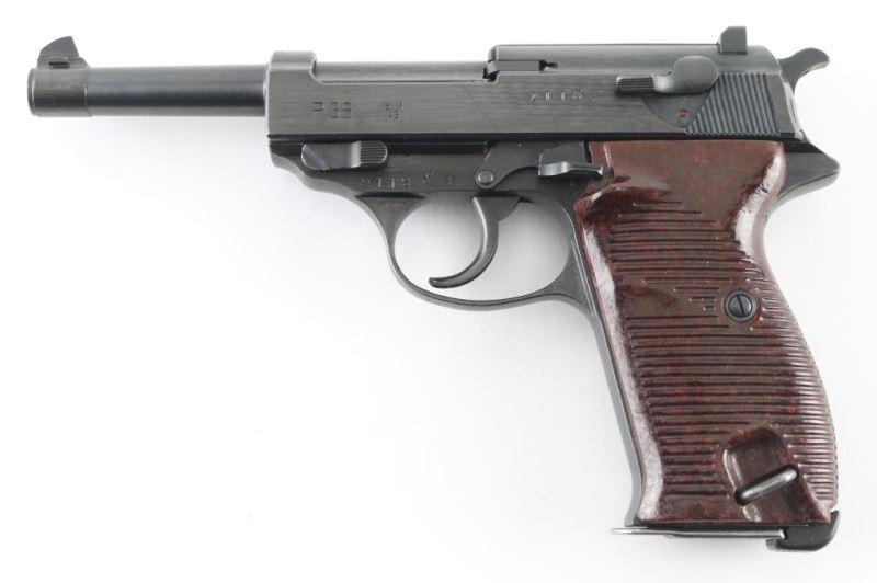 Pistol. Semi-Automatic. 8 rd Magazine. Third Reich era military issued sidearm. 4.9" barrel. Short recoil, hinged locking piece assisted breechblock. byf 43. Matching serial numbers including the locking block. Eagle 1345 Waffenamts. Bore appears good/bright. Bakelite grips very good. Blued finish is about 95% with some very minor scratches, handling loss to the fore strap. Blue finish to the slide is mottled from handling. Original magazine stamped P.38, Waffenamt. NRA Condition-Very Good. C&R firearm