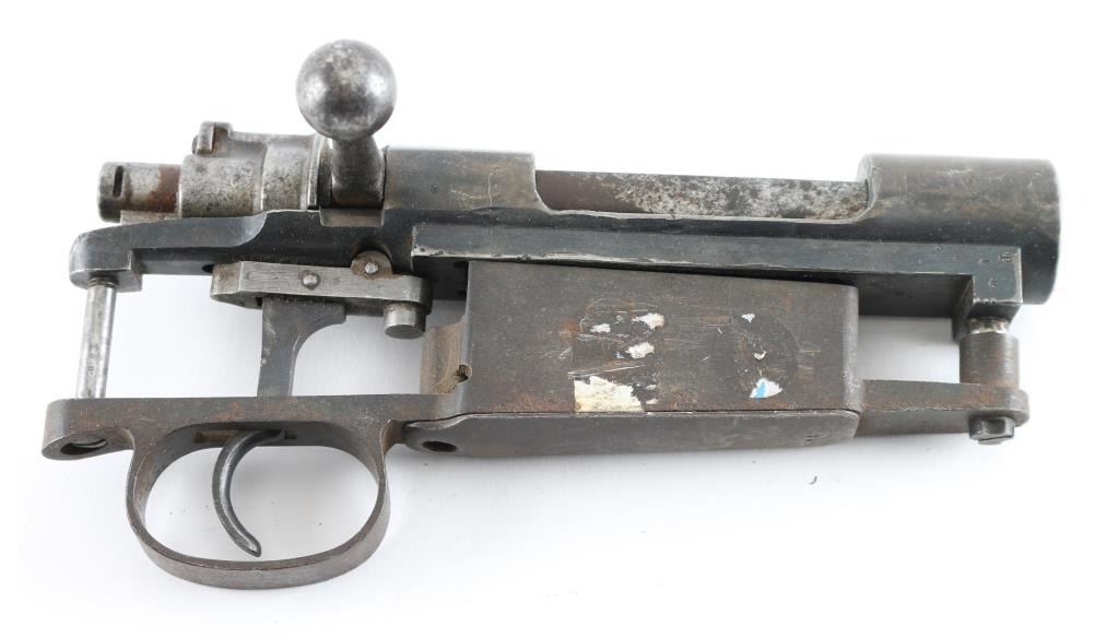 Unmarked, scrubbed Action Only for a bolt action rifle. Appears complete, in good overall condition. Blued finish, straight bolt handle. Mismatched numbers. Shows much bare metal and light patina, with moderate patina throughout the bolt assembly. Condition is NRA Good *** C&R Firearm ***