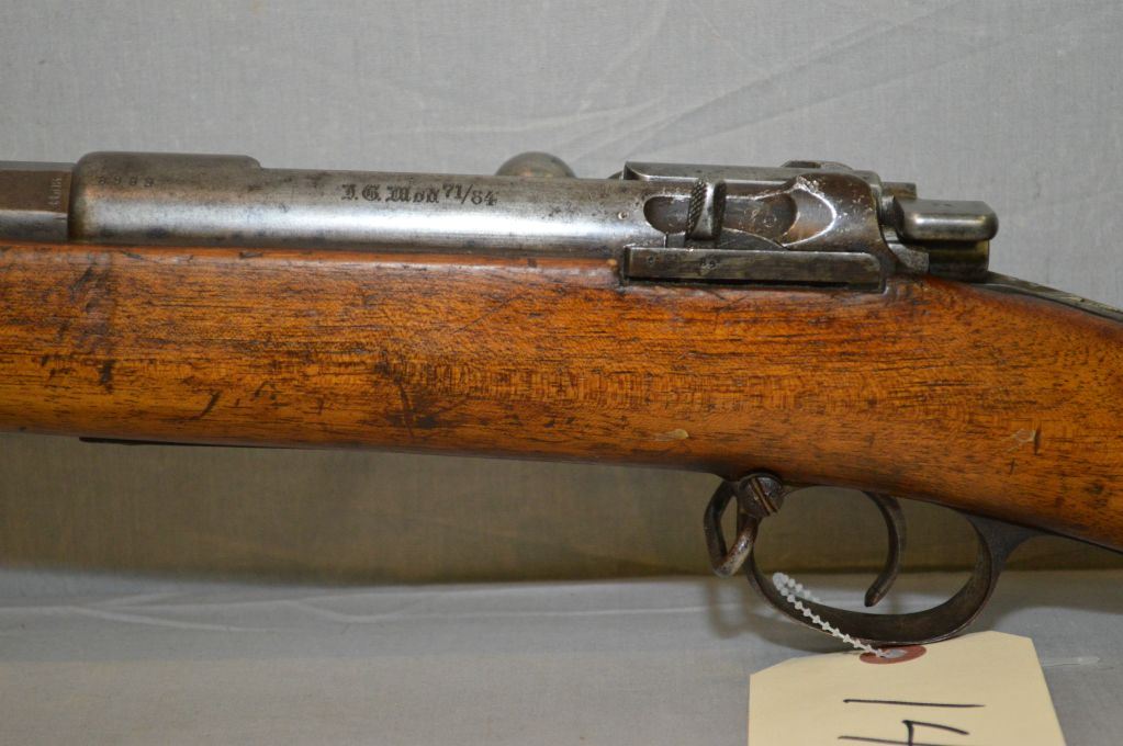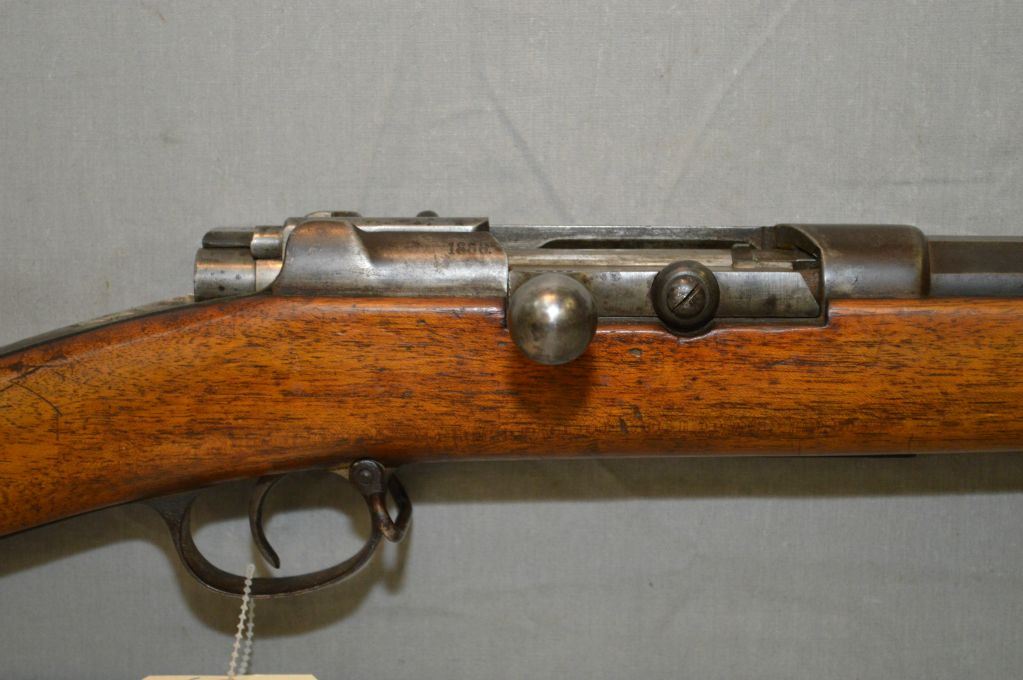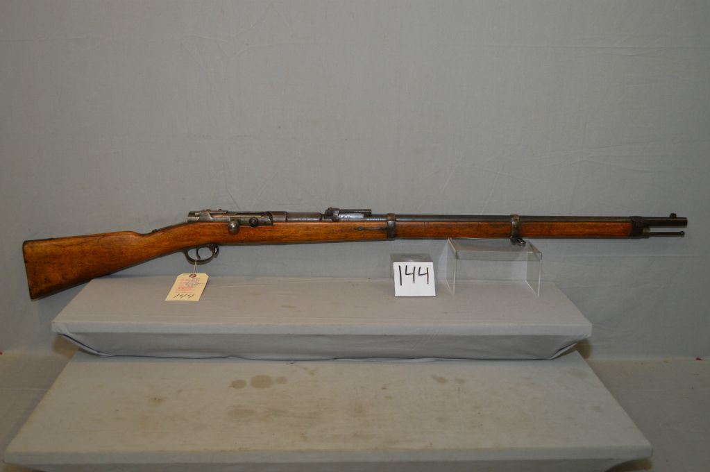 Mauser ( Spandau ) Model 1871/84 .11 MM / .43 Mauser cal Tube Fed Bolt Action Full Wood Military Rifle w/ 31 1/2" bbl [ appears to be matching numbers, dated 1888, fading blue finish turning brown, good wood w/ deep Cartouche , Regimental markings on butt plate, sling swivels ( 158 ) ] Ser # 8989