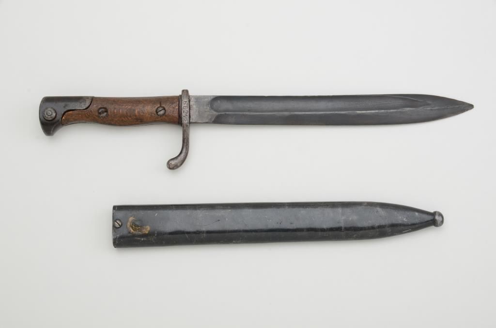 Mauser bayonet with metal scabbard in overall fair to good condition marked on hilt “Waffenfabrik Mauser A.G. Oberndorf a.N”. Est.: $50-$75.