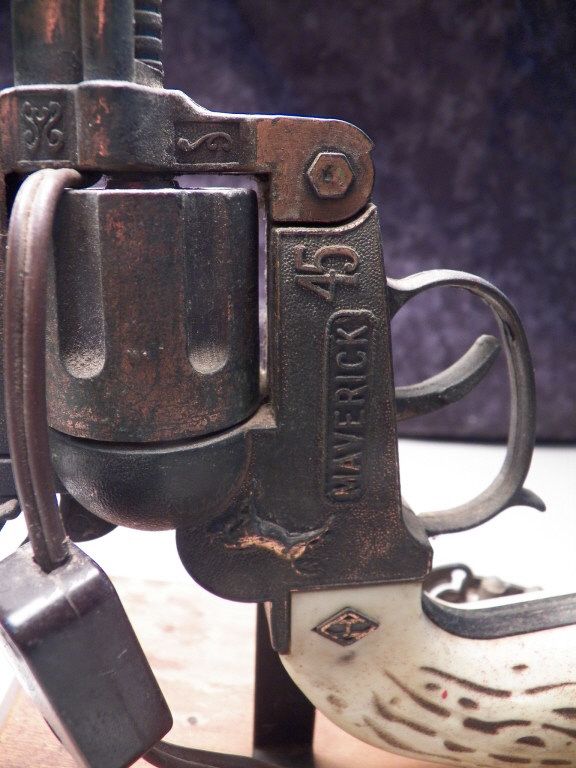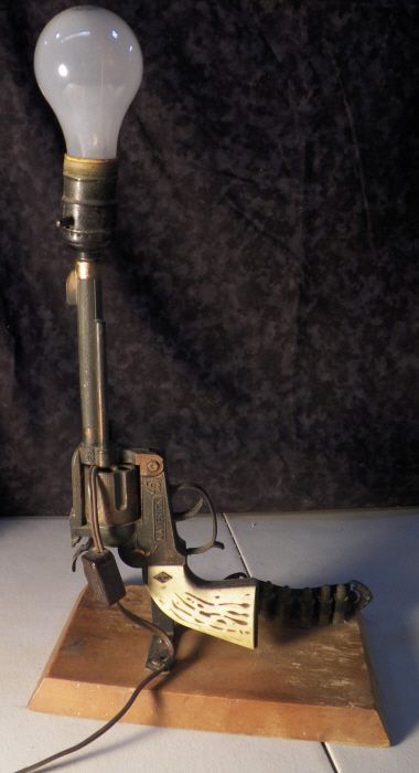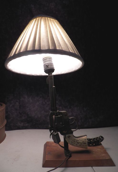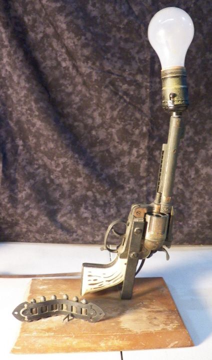 Vintage Hubbly Maverick Cap gun made into a lamp 10" wide x 19" tall including shade