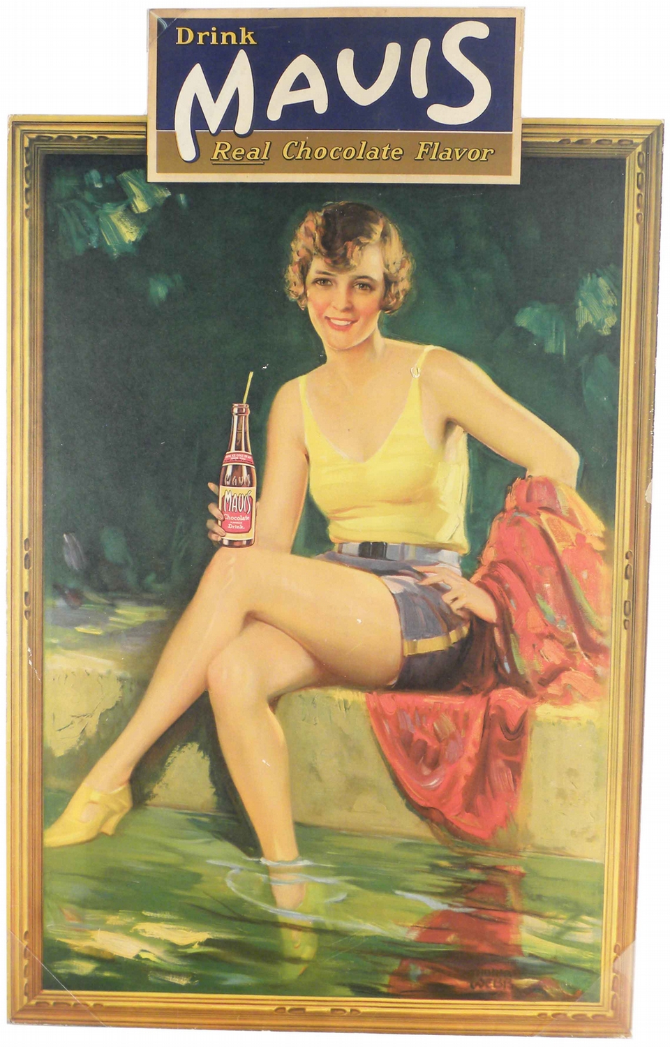Mavis Chocolate Drink Self Framed Die Cut Cardboard Sign. A couple of minor scuffs otherwise excellent condition. 18 1/2 X 29 1/2 inches.