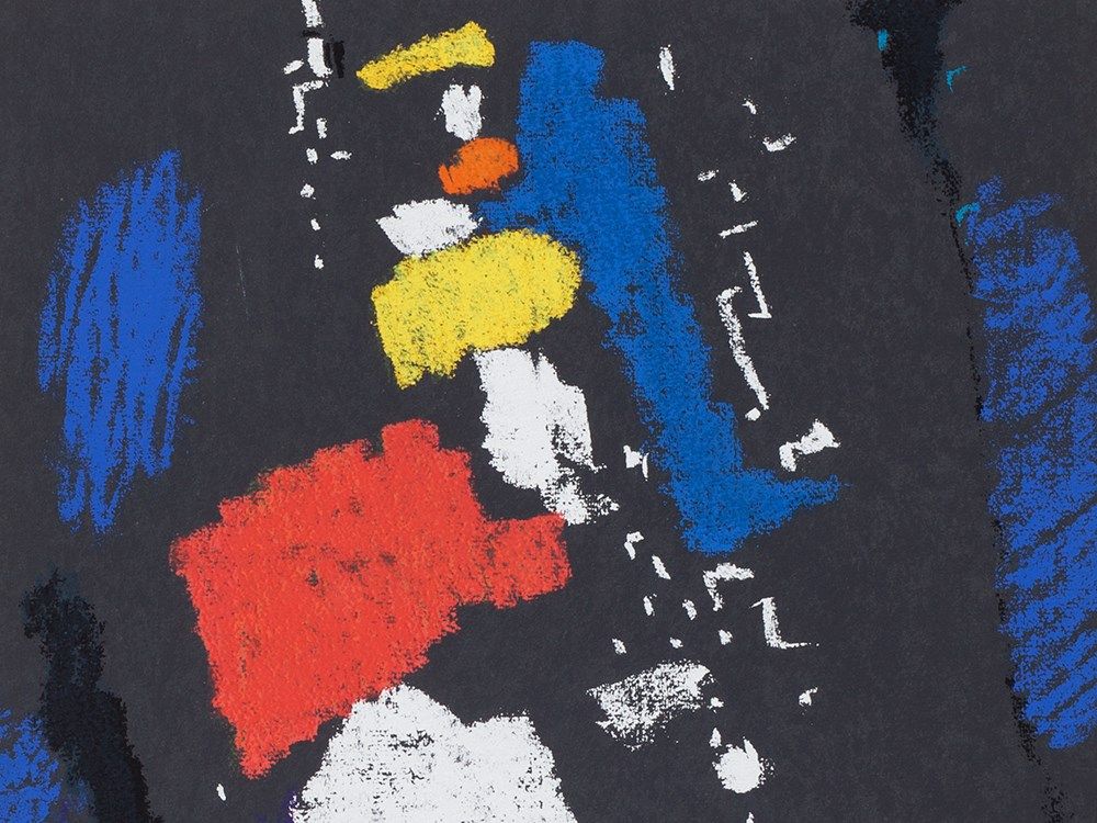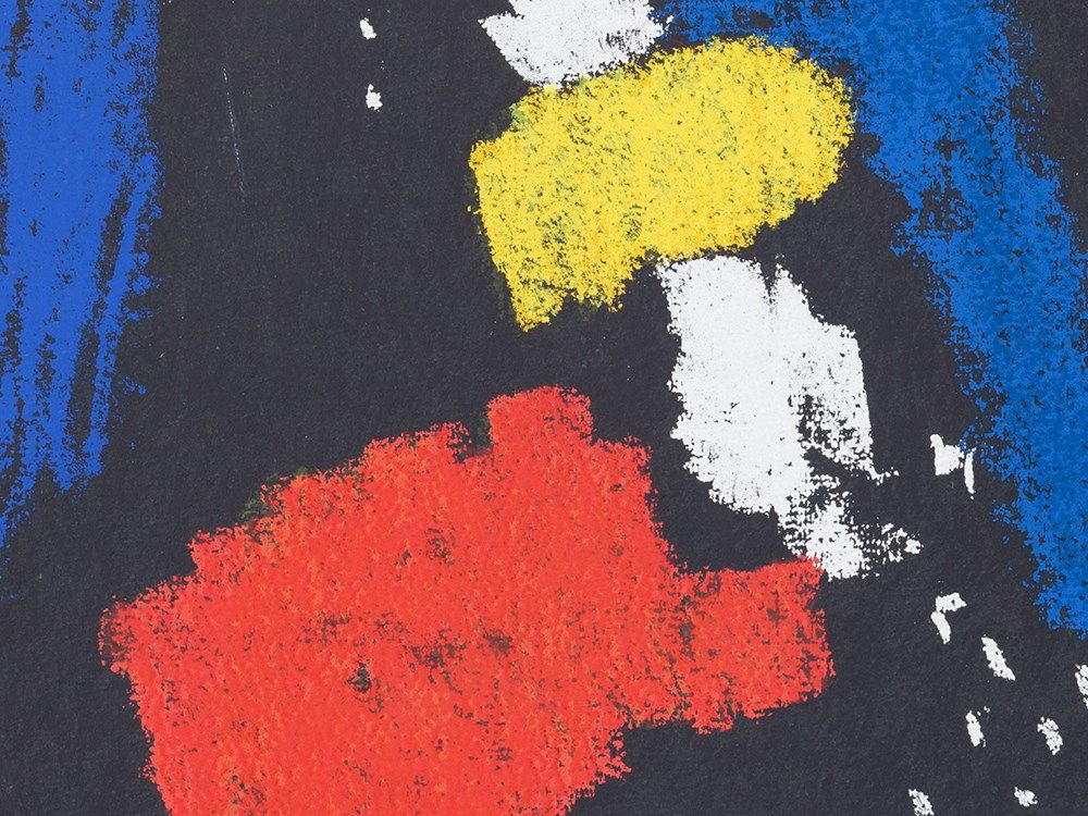 The silkscreen in colors is signed and dated in pencil lower right ‘Max Ackermann 1958.’. The sheet is verso mounted with adhesive stripes reversible under a mat. The work is in good condition with hardly any traces of wear. The image size is ca. 49.3 x 31 cm and the sheet measures 64.5 x 45.6 cm. The dimensions of the mat are 69.7 x 50.4 cm.