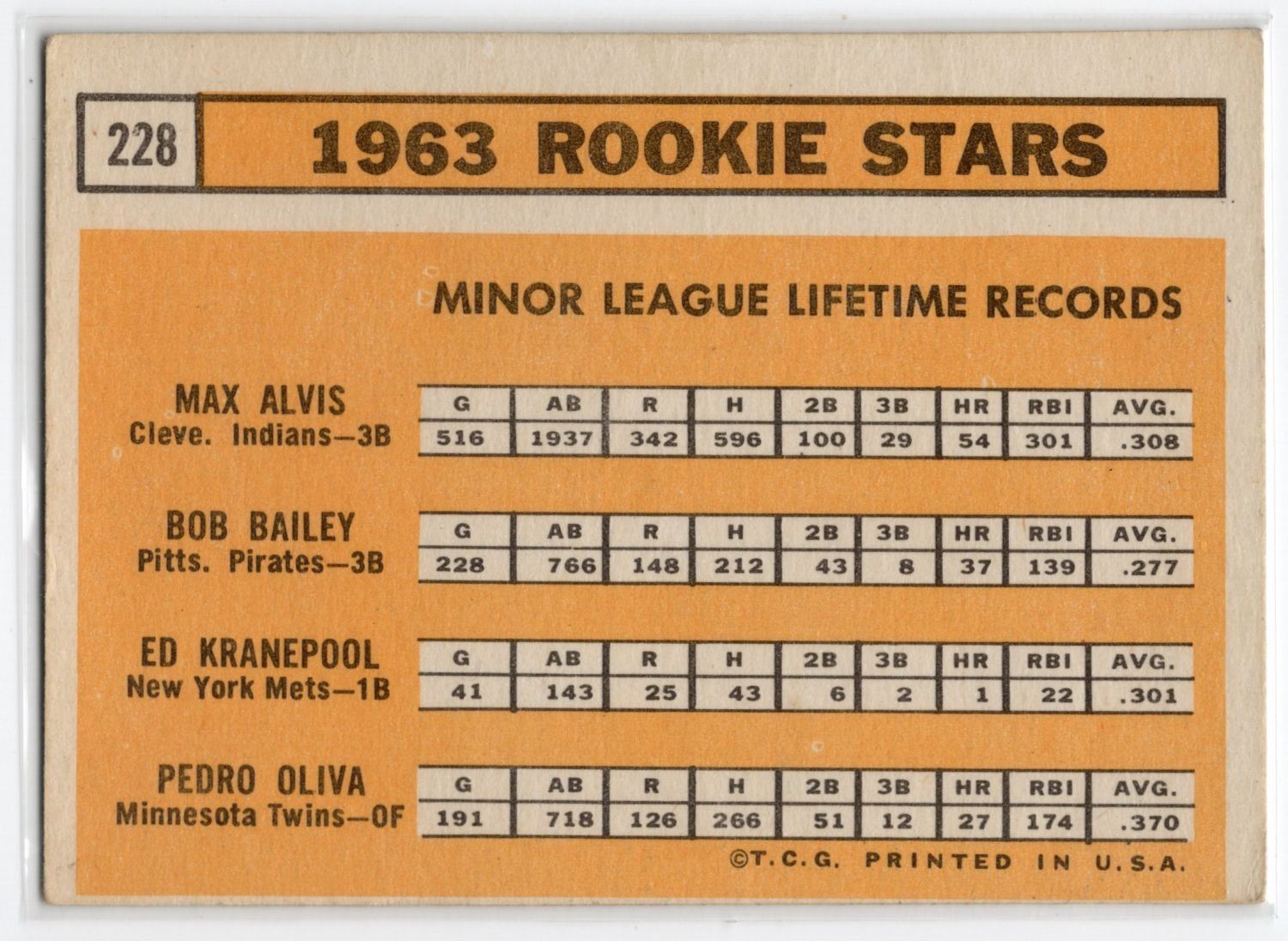 Max Alvis 1963 Rookie Stars 1963 Topps Card number 228