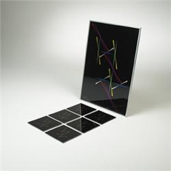 Max Bill tray and drink coasters Germany, 1960s enameled aluminum Signed lower left: [Max Bill Akcentgruppen].
