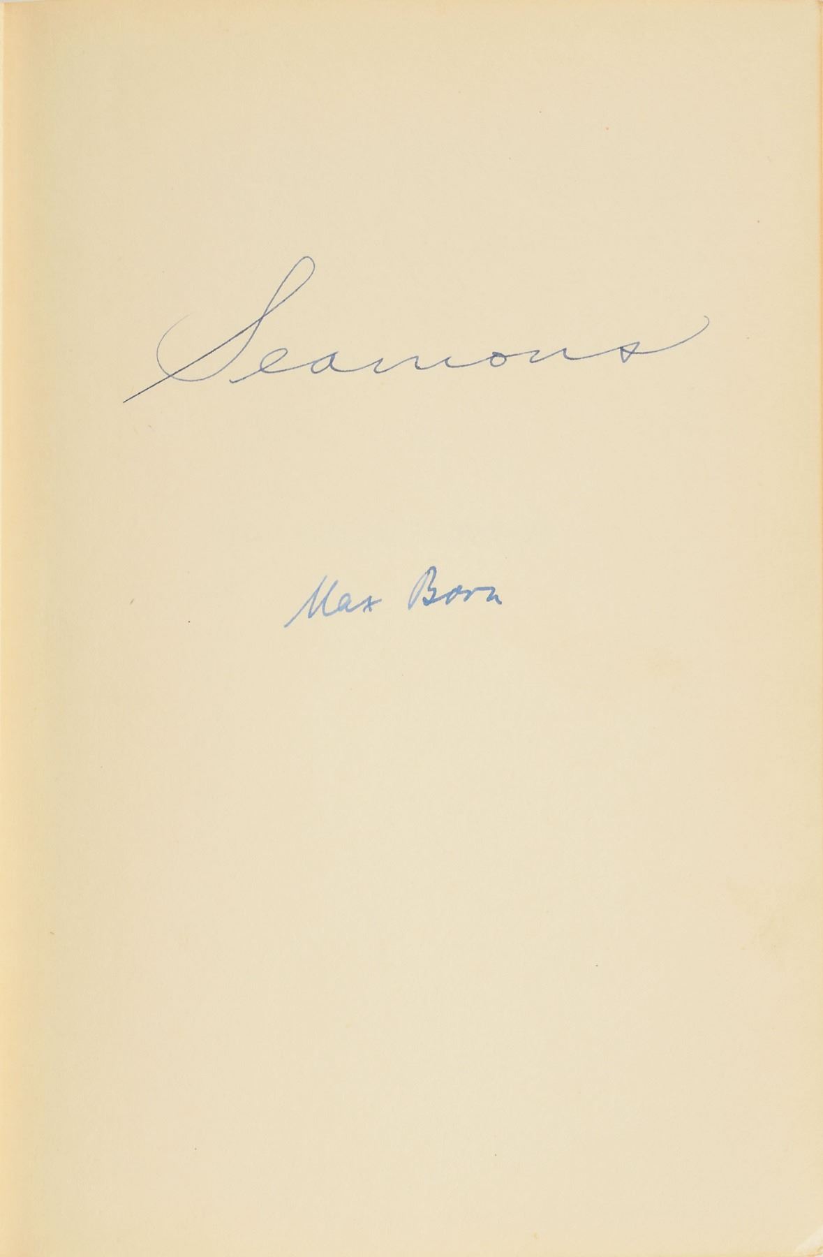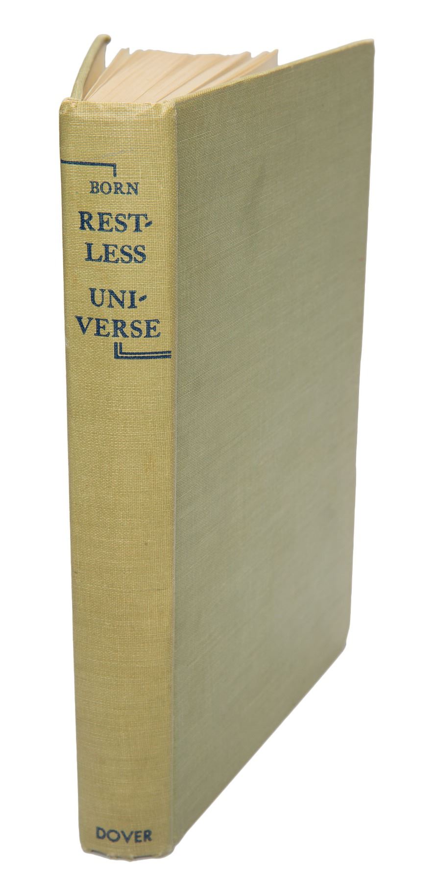 Signed book: The Restless Universe. Second edition, revised. NY: Dover Publications, 1951. Hardcover, 6.25 x 9.5, 315 pages. Signed on the first free end page in blue ink by Born. In fine condition, with an ownership signature above Born's signature.