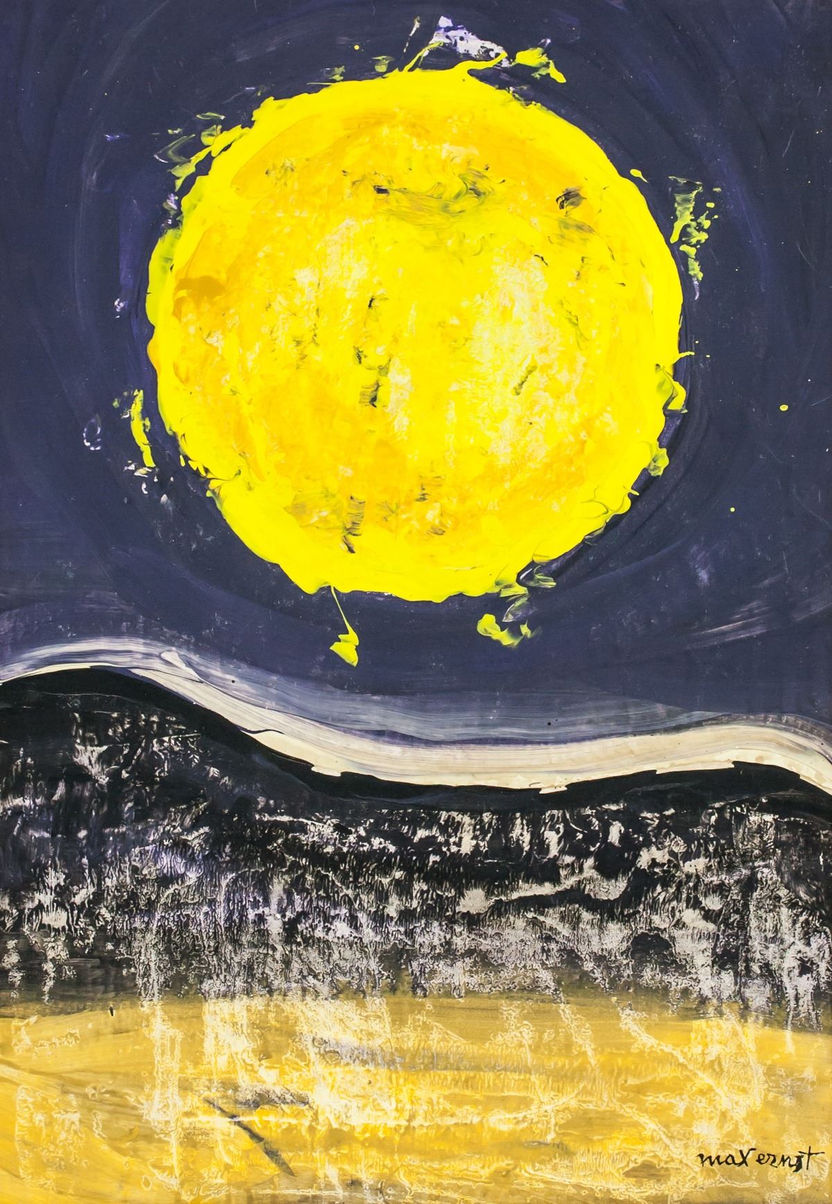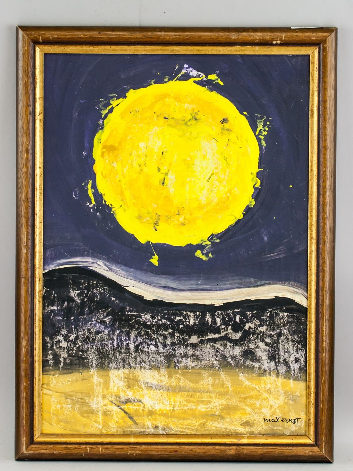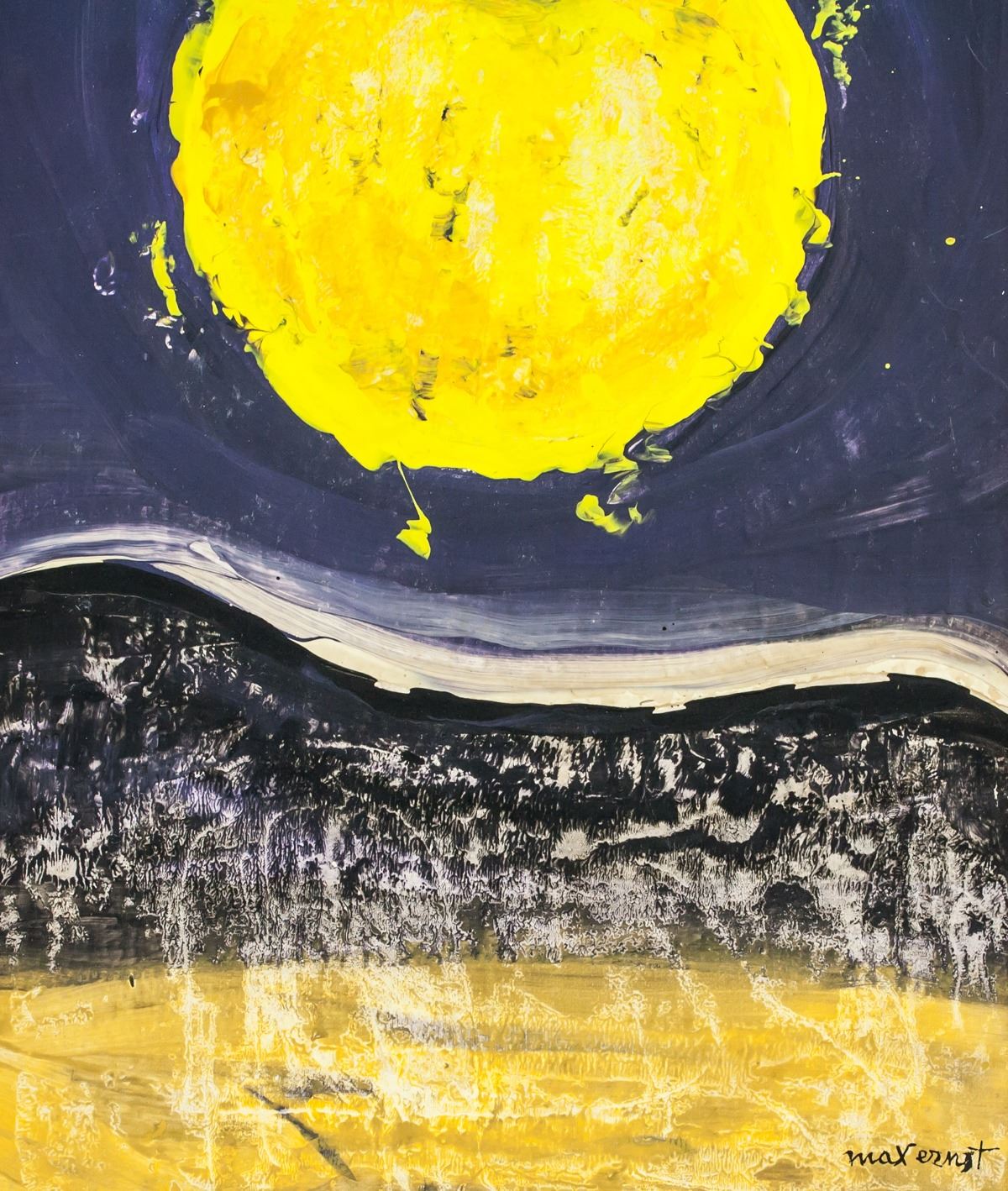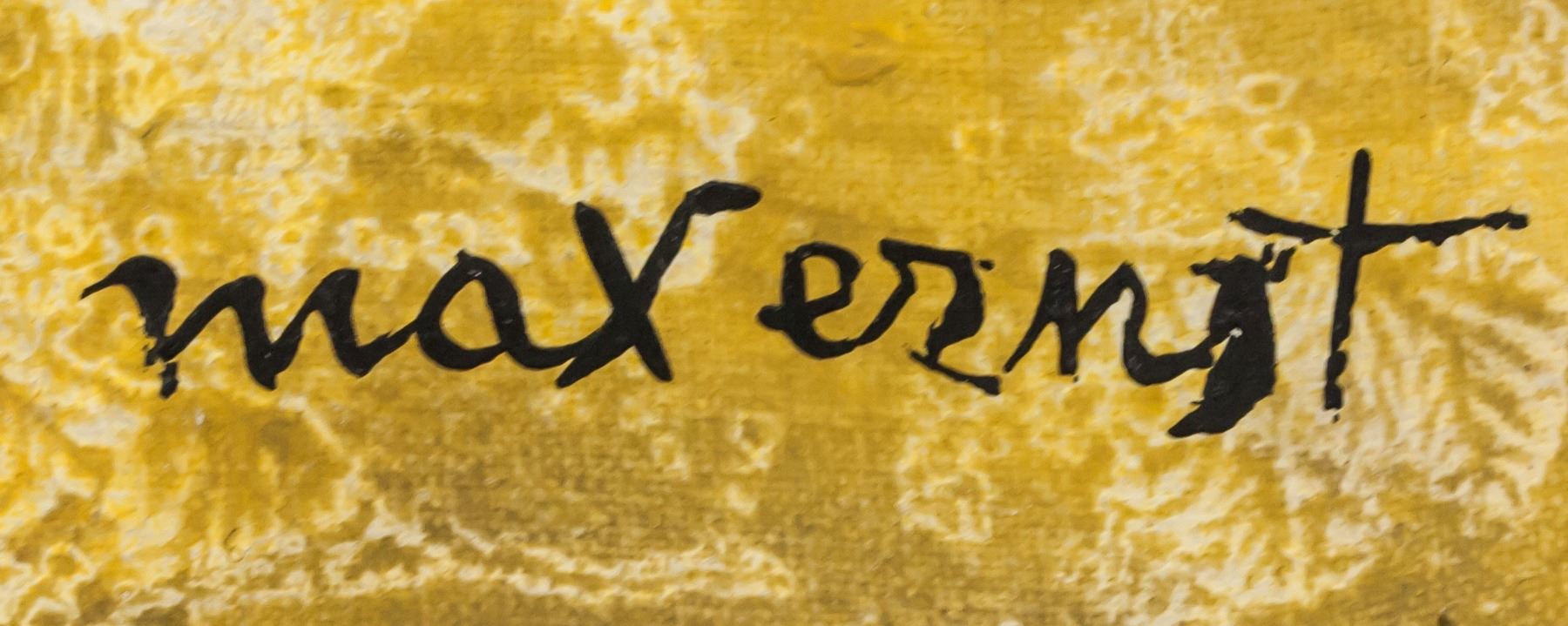 Oil on canvas, stretched and framed. Featuring a surrealist landscape scene. Signed max ernst on the lower right corner. Attributed to Max Ernst (1891-1976, German). 53.5 x 38 cm (21.1 x 15.0 inches). Framed size: 60 x 44 cm (23.6 x 17.3 inches). PROVENANCE: Southern Ontario estate