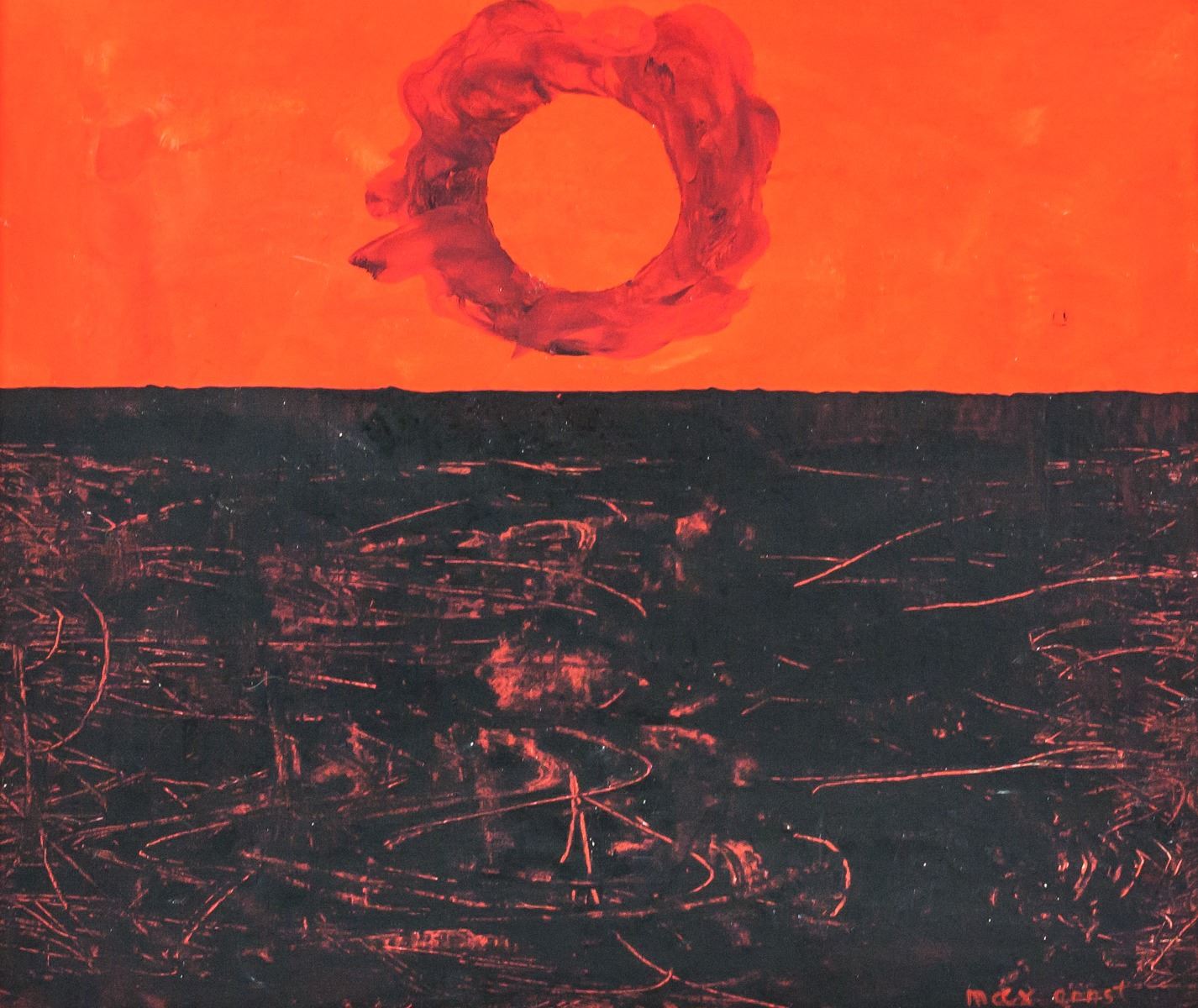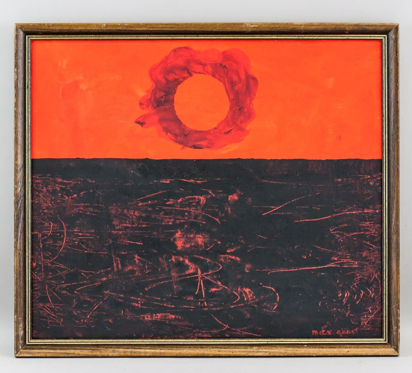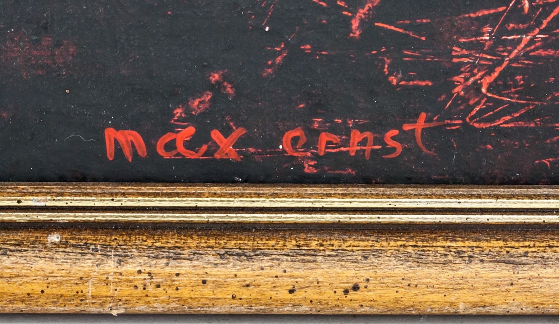 Oil on canvas, framed. Featuring an abstract expressionist composition. Signed max ernst on the lower right corner. Attributed to Max Ernst (1891-1976, American). 45 x 52 cm (17.75 x 20.5 in), Frame: 49 x 56.5 cm (19.25 x 22.25 in). PROVENANCE: This lot carries limited provenance from a Southern Ontario estate