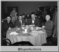 Max Factor, Cary Grant, Jack Oakie & Preston Foster from The Max Factor Collection / (5) 5 x 4 Negatives of Max Factor, Cary Grant, Jack Oakie and Preston Foster Sitting at a Dining Table