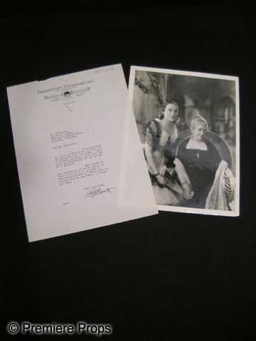 Max Factor's denied proposal for the film The Texans (1938) - Features a typed out note to Max Factor explaining they will be using another company to supply their wigs with a black and white photo. Previously on display at the Hollywood Entertainment Museum.