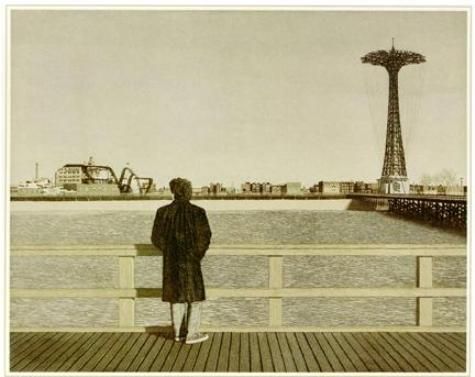 Offered here is a signed limited edition hand-colored etching and aquatint by the well-known New York urban landscape painter Max Ferguson: Title: "Coney Island - Self Portrait" 1991 14¾ × 18¾ Signed and numbered from an edition of 100 Very good - excellent condition Authenticity unconditionally guaranteed Max Ferguson was born in New York in 1959. His background was in animation but while spending a year at an art school in Amsterdam, his interest switched to painting. He continues to be greatly influenced by 17th century Dutch painting. He has worked on a number of series over the years, including a commission from the Transit Display Inc. to promote issues of social importance on the side of hundreds of buses in twenty cities throughout the United States. He has painted work for the subways, Coney Island, nocturnal imagery and Jewish scenes. He has expanded his imagery to include other parts of the United States as well as Ireland and Israel.