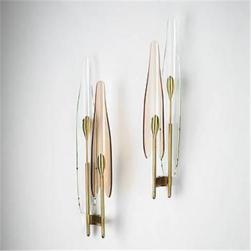 Max Ingrand<BR>Dalia sconces, pair<BR>Fontana Arte<BR>Italy, 1955<BR>crystal, brass <BR>6"w x 5"d x 32"h<BR>Literature: Il Design Italiano Degli Anni '50, Branzi and de Lucchi, pg. 231<BR><BR><BR><BR><BR>
