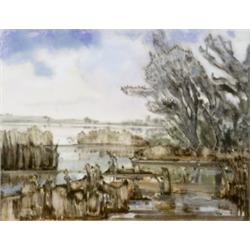 Max Kaus (German 1891-1977), Marsh Landscape, Signed Kaus, dated 45 and inscribed Kirchmeiser...