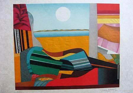 Artist: Max PapartSignature: Signed by the artistTitle: 4Medium: Lithograph with Embossing on Japon PaperEdition: Limited, numberedSize: 18.5" x 23" Condition: ExcellentBiography: * Papart (1911-1994), who was born in Marseilles, began his career as a landscape painter. His work evolved into abstraction, and he gained a reputation as the heir to classic cubism. Through the years he has developed spiritual affinities with other styles and schools. Elements of Etruscan, archaic European, African, and pre-Columbian art have influenced his work, leading to his present semi-figurative style. In Papart's art, composition goes hand in hand with color, each strengthening the other. He feels that "color is intuitive." His etchings are noted for contrast in surface textures, achieved with aquatint for a soft, mottled appearance and with carborundum, a technique that results in deep veining reminiscent of stone. Papart has received a number of awards for printmaking. His work is found in many collections, including those of the Victoria and Albert Museum, London, the Musee d'Art Moderne, Paris, the Israel Museum, Jerusalem, and Yale University, New Haven . *
