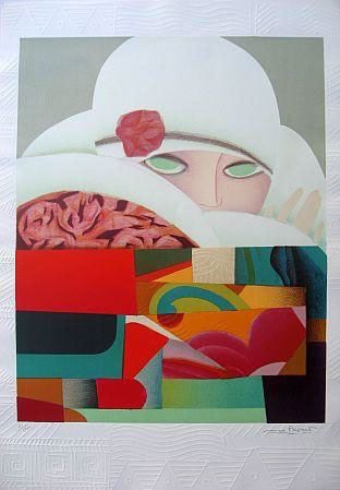 Papart, Max "Woman with a Hat" Color lithograph with embossing on Arches paper. Signed and numbered by artist. Dimensions: 21 1/4 x 25 3/4 inches. Accompanied by a certificate of authenticity.