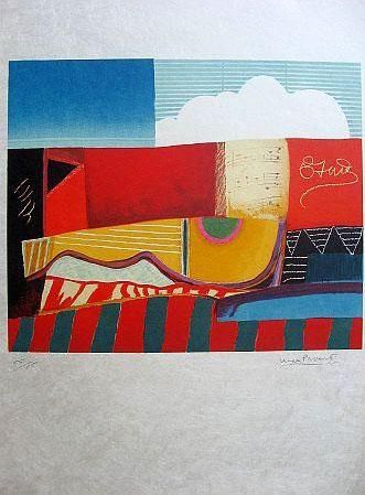 Artist: Max PapartSignature: Signed by the artistTitle: 1Medium: Lithograph on Japon paper Edition: Limited, numberedSize: 16" x 19.75" Condition: ExcellentBiography: * Papart (1911-1994), who was born in Marseilles, began his career as a landscape painter. His work evolved into abstraction, and he gained a reputation as the heir to classic cubism. Through the years he has developed spiritual affinities with other styles and schools. Elements of Etruscan, archaic European, African, and pre-Columbian art have influenced his work, leading to his present semi-figurative style. In Papart's art, composition goes hand in hand with color, each strengthening the other. He feels that "color is intuitive." His etchings are noted for contrast in surface textures, achieved with aquatint for a soft, mottled appearance and with carborundum, a technique that results in deep veining reminiscent of stone. Papart has received a number of awards for printmaking. His work is found in many collections, including those of the Victoria and Albert Museum, London, the Musee d'Art Moderne, Paris, the Israel Museum, Jerusalem, and Yale University, New Haven . *