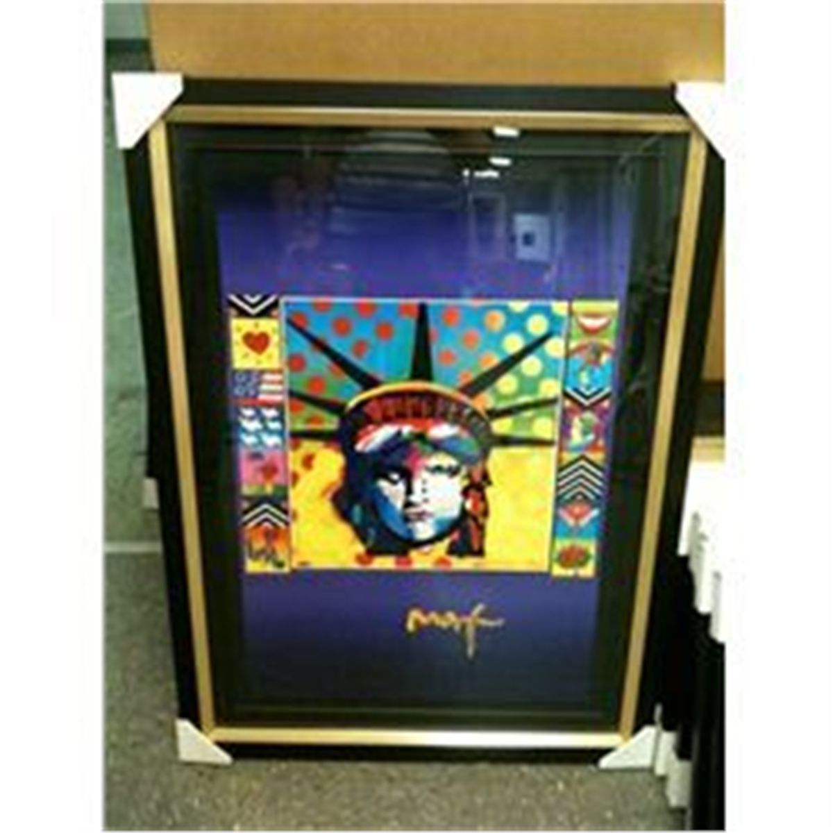 Max, Peter: Delta Head Compilation 13: 13 of Peter Max's most famous & iconic images are displayed in and around his most prolific, patriotic image, The Delta Head of Lady Liberty: Size: 30" X 40". Original. Certificate of authenticity included. Additional images available upon request. Please do not hesitate to ask further questions.