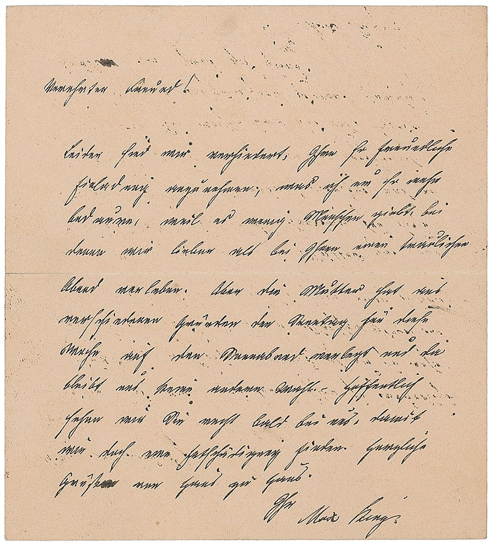German physician and writer (1817–1901) active in the Berlin-based literary society Tunnel über der Spree. Neatly penned ALS in German, one page, 4 x 4.5, no date. Untranslated. In fine condition, with tiny edge separation to left edge.