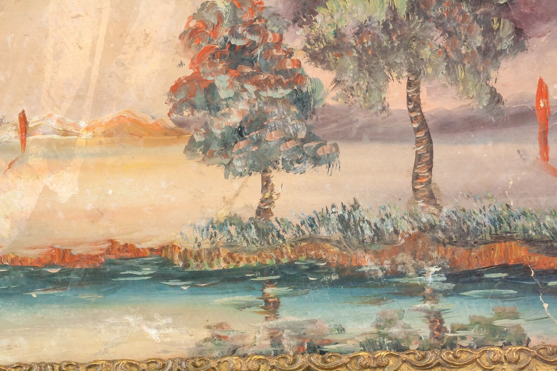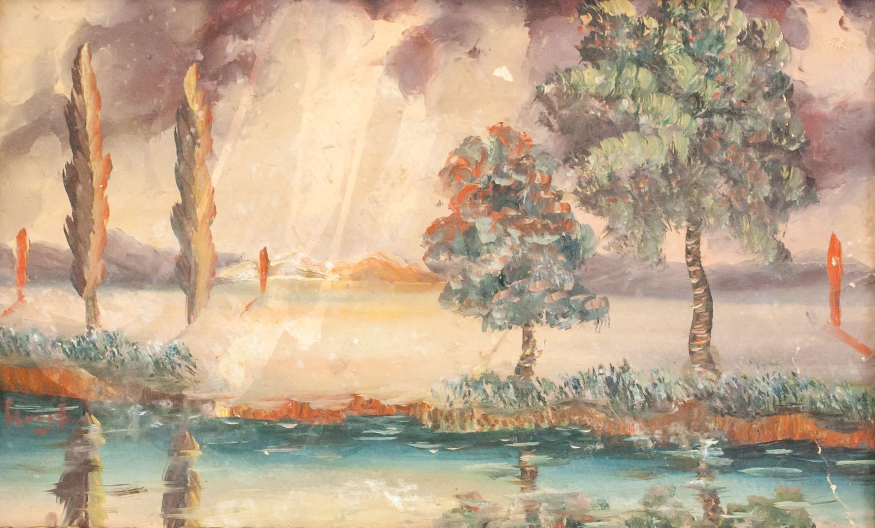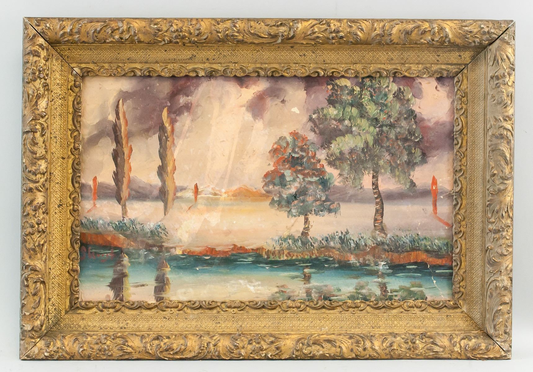 Oil on board, framed. Featuring landscape scene. Signed Slevogt near the left edge. Attributed to Max Slevogt (1868-1932, German). 30 x 49 cm (12 x 19.5 inches), Frame: 44 x 63 cm (17.5 x 25 inches). Provenance: This lot carries limited provenance from a Southern Ontario estate