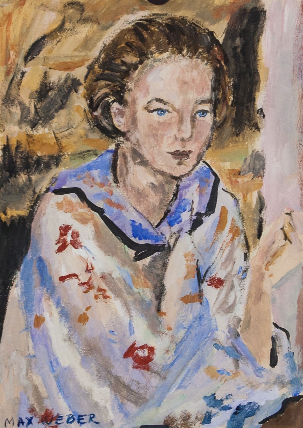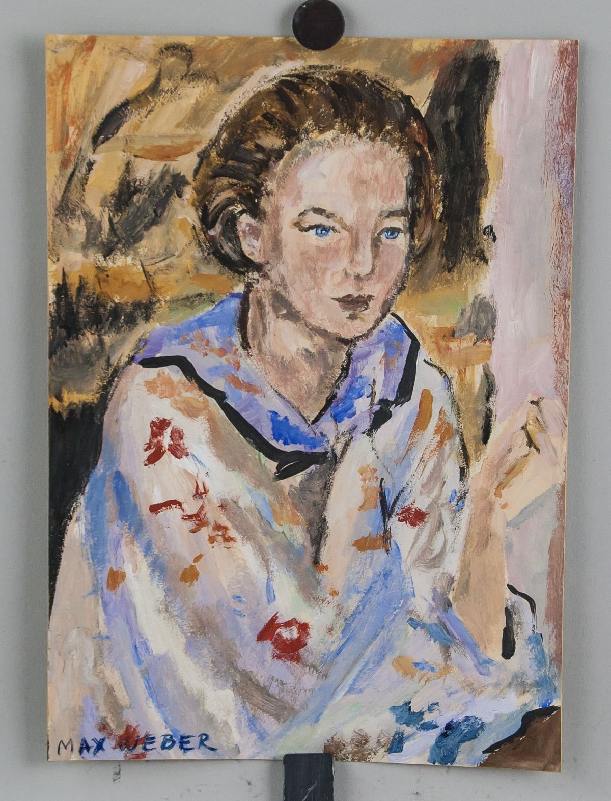 Mixed media on paper. Featuring a portrait of a woman. Signed MAX WEBER on the lower left corner. Stamped Waddell - Ny and inscribed 19 on verso. Inscribed in pencil N667 on verso. Attributed to Max Weber (1881-1961, American). 27 x 19.5 cm (10.6 x 7.7 inches). PROVENANCE: Southern Ontario estate