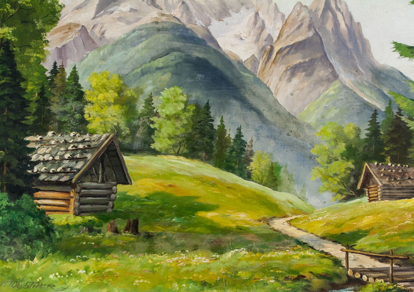 Oil on canvas, framed. Featuring a landscape scene. Signed Wustner on the lower left corner. Attributed to Max Wustner. 59 x 79 cm (23.2 x 31.1 inches). Framed size: 73 x 93 cm (28.7 x 36.6 inches). PROVENANCE: Private European collection (Bayern, Germany)