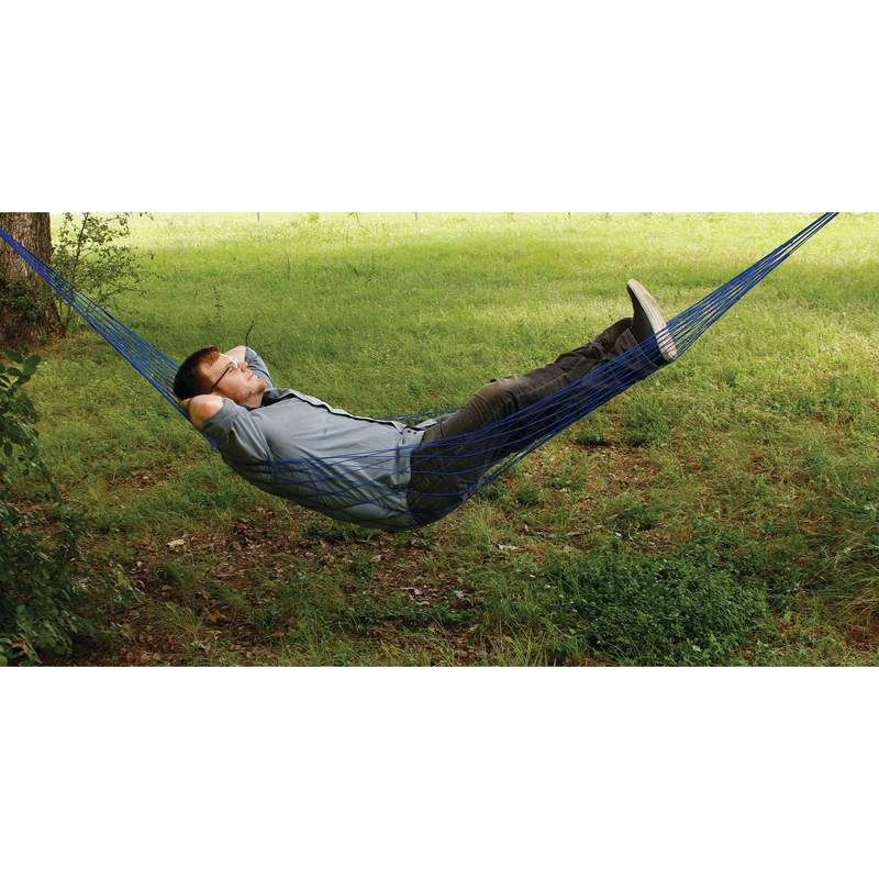 Maxam 6'9" Nylon Netting Hammock **|**|** Adult size, with metal hanging rings and weight capacity of 220lbs. Header card