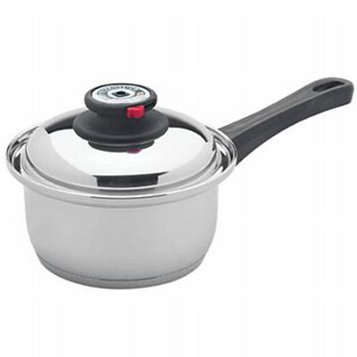 Maxam 9-Element 1.7qt Saucepan with Cover-KTSC1 **|**|** This T304 stainless steel pan features Steam Control cover valve, capsule bottom, heavy-duty handle with handy hang-up design, and mirror finish exterior for beauty. Dishwasher safe. Limited lifetime warranty