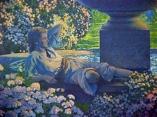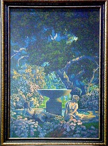 Maxfield Parrish; Edison Mazda calendar top "Reveries" 1926 for 1927 calendar; in original frame; image measures 21 3/4" x 14" (no visible defects)