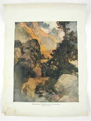 Maxfield Parrish Print, "Bellerophon Watching By The Fountain", paper size 16.5" x 12"