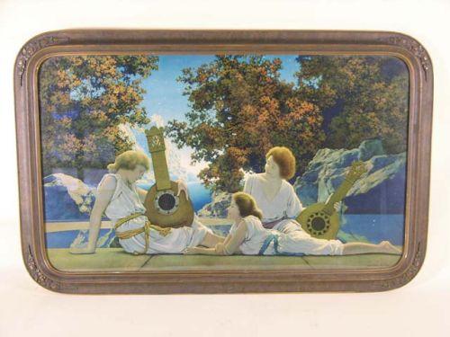 Maxfield Parrish print - "3 Girls Playing Lutes" in original frame, 33.5" x 21" including frame.