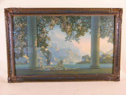 Maxfield Parrish print - "Daybreak" in original frame, 33.5" x 21.5" including frame.