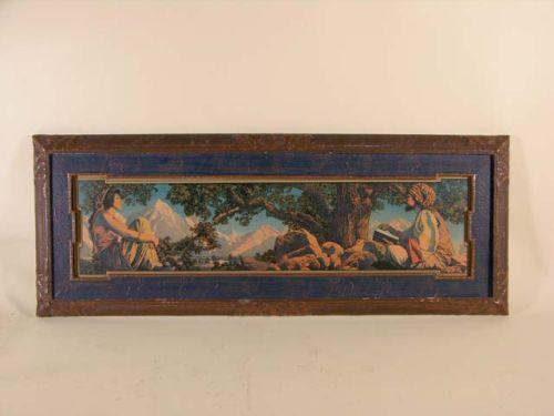 Maxfield Parrish print for C.A. Crane Co., Cleveland, OH. 1917 "Rubiyat" in original frame. 36" x 13.5" including frame.