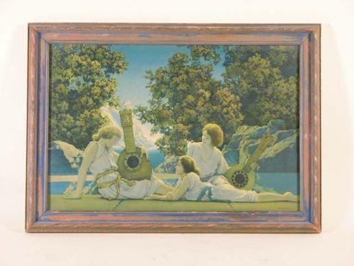 Maxfield Parrish print - Lute players in original frame, 21" x 15" including frame.