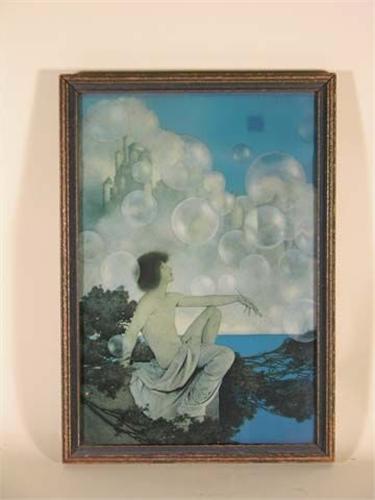 Maxfield Parrish print - girl with bubbles. 12" x 17"