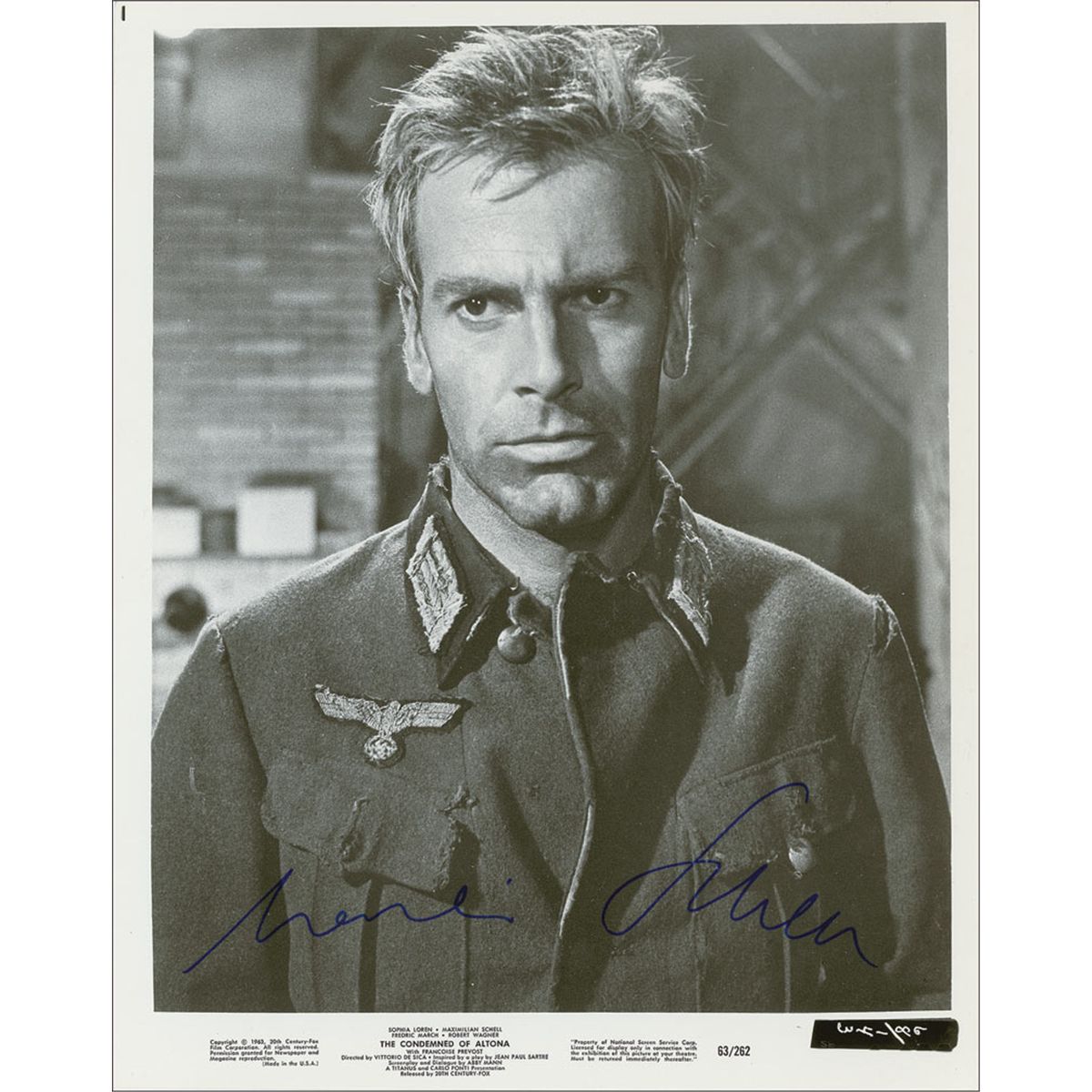 Glossy 8 x 10 20th Century Fox promotional photo for The Condemned of Altona, signed in blue felt tip. Horizontal streak through facial area and scattered light spotting to finish, otherwise fine condition.