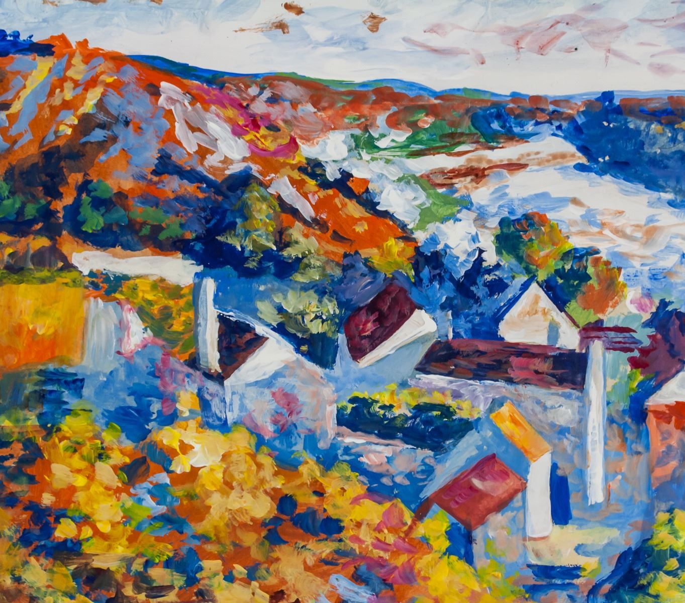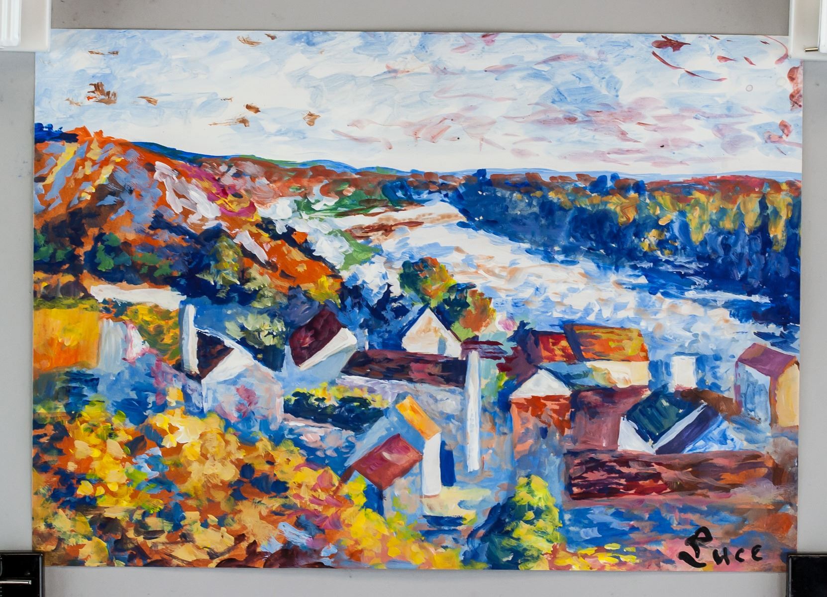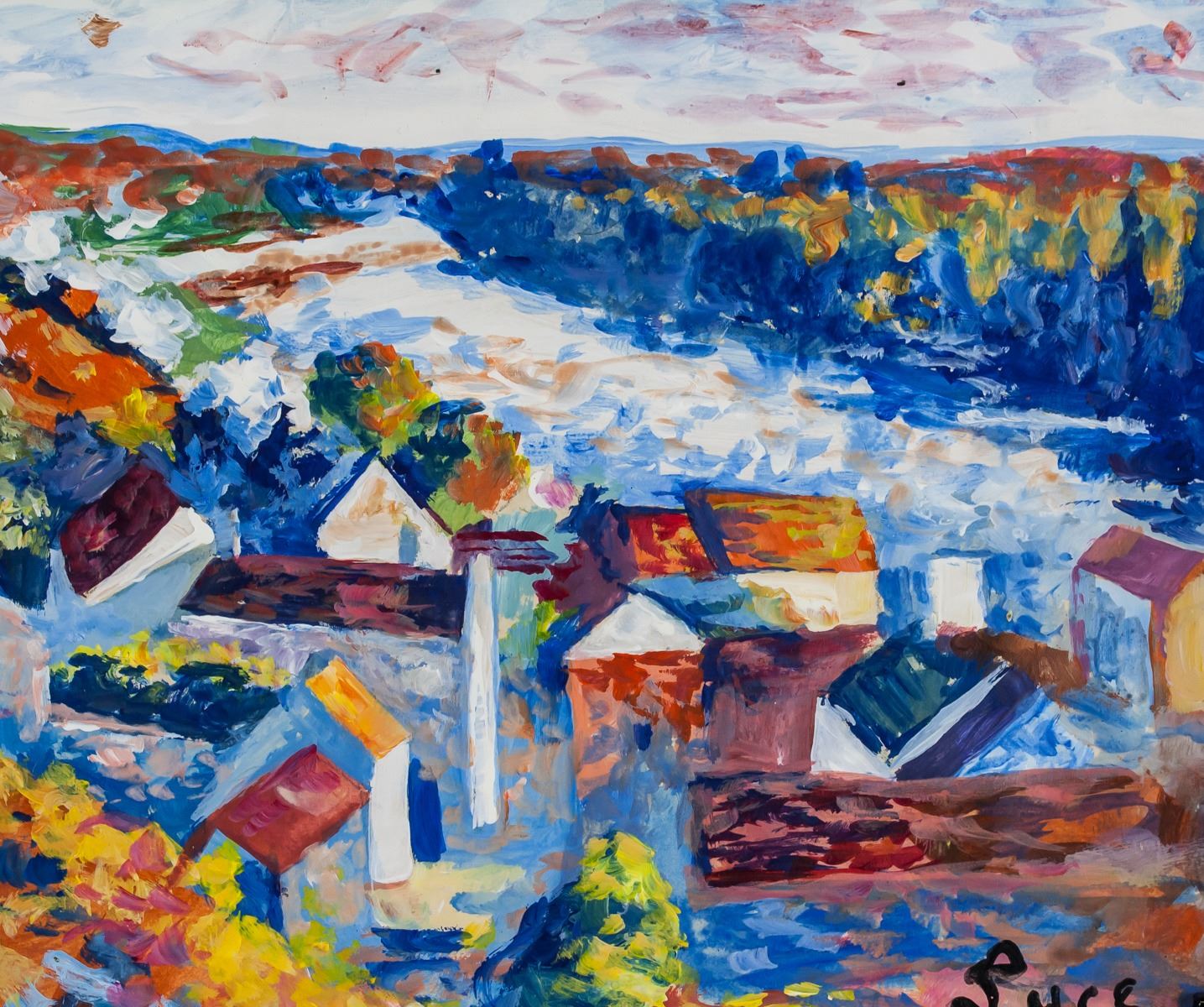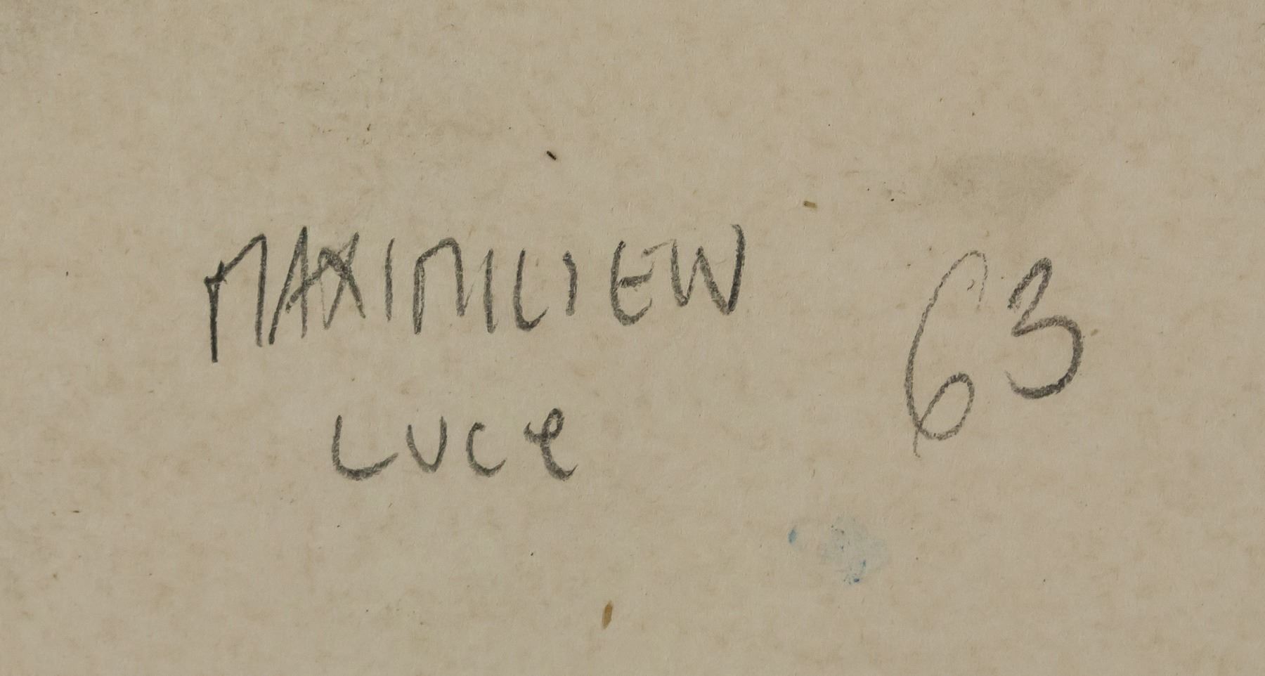 Oil and gouache on paper. Featuring a neo-impressionist landscape scene. Signed Luce on the lower right corner. Inscribed MAXIMLIEN LUCE 63 and stamped Byne on verso. Attributed to Maximilien Luce (1858-1941, French). 20 x 28 cm (7.75 x 11 in). PROVENANCE: Southern Ontario estate