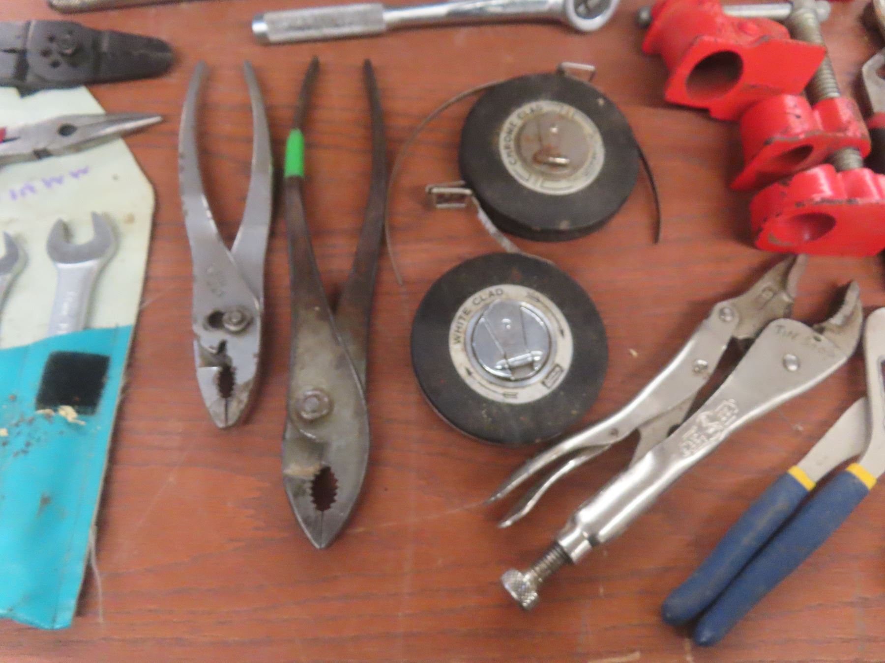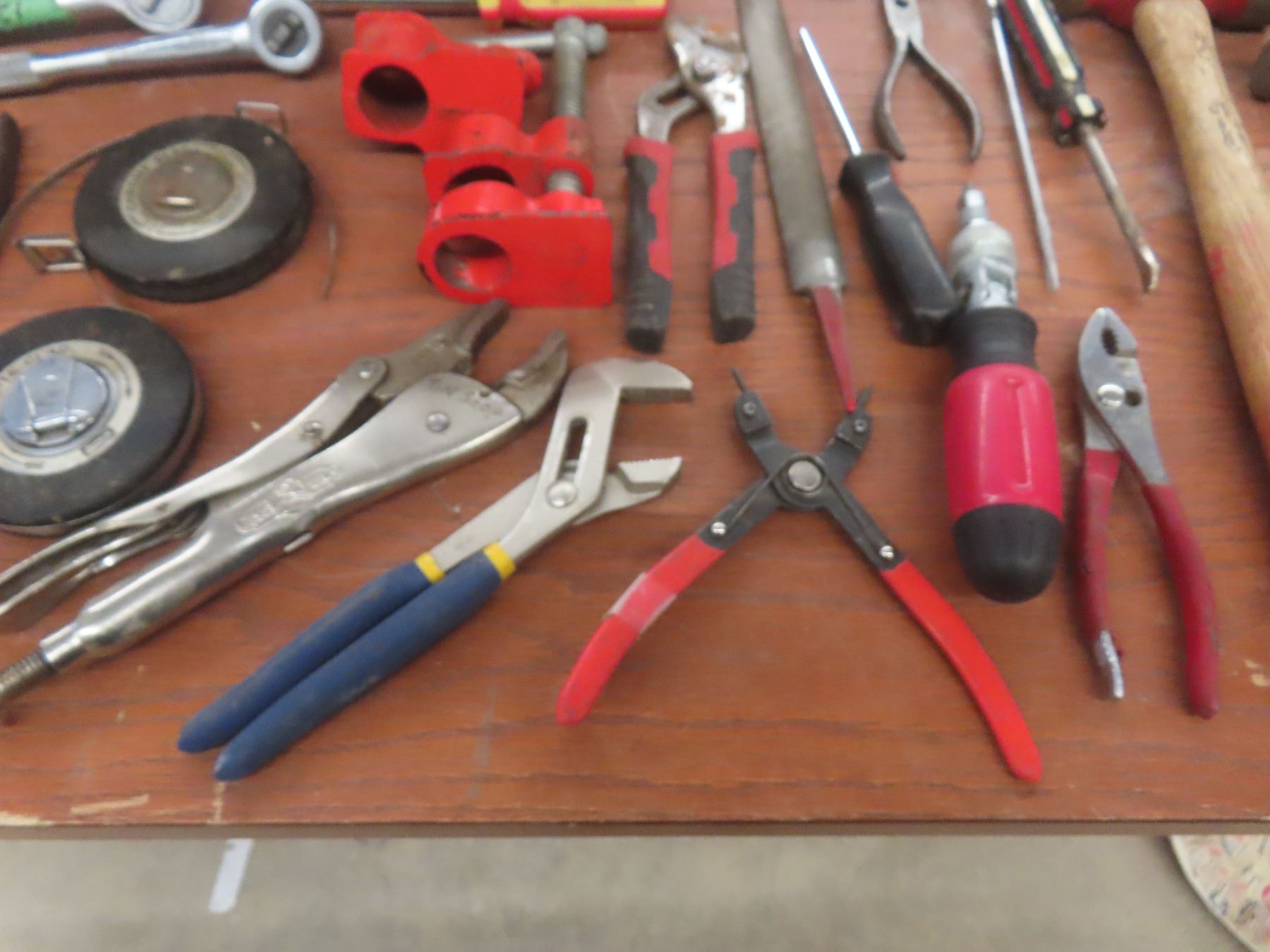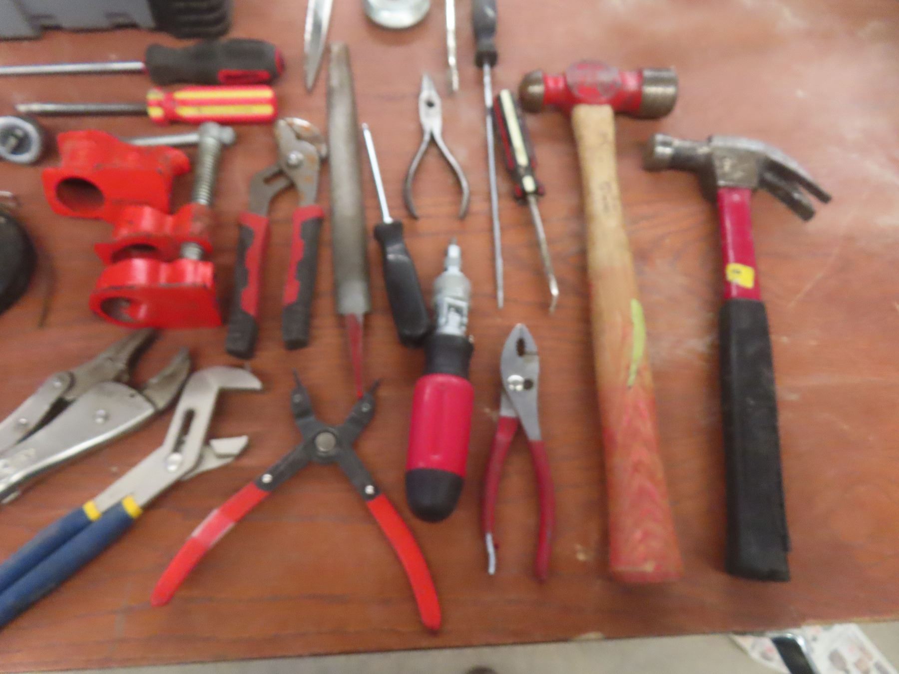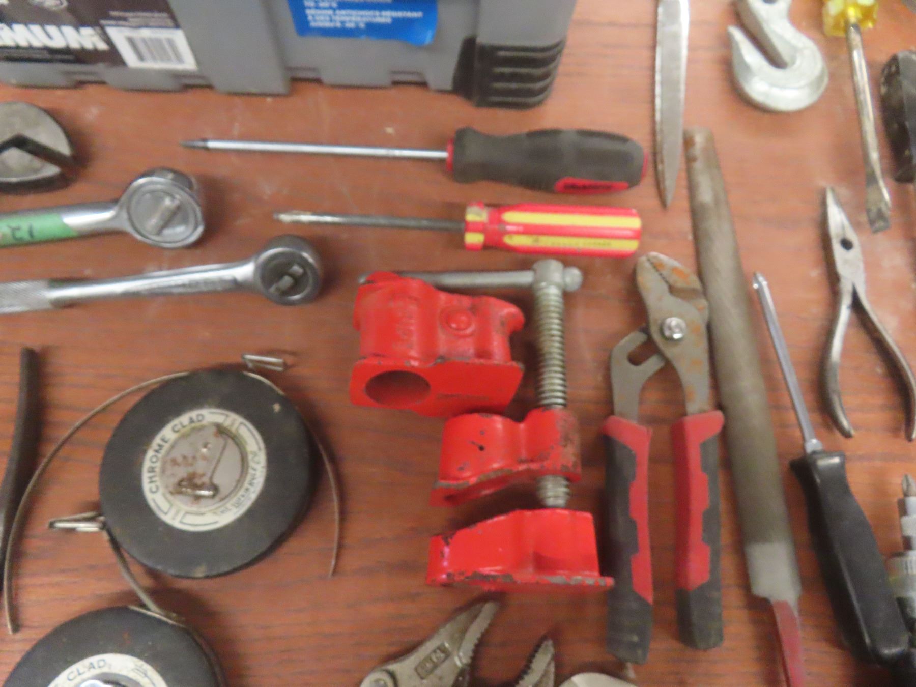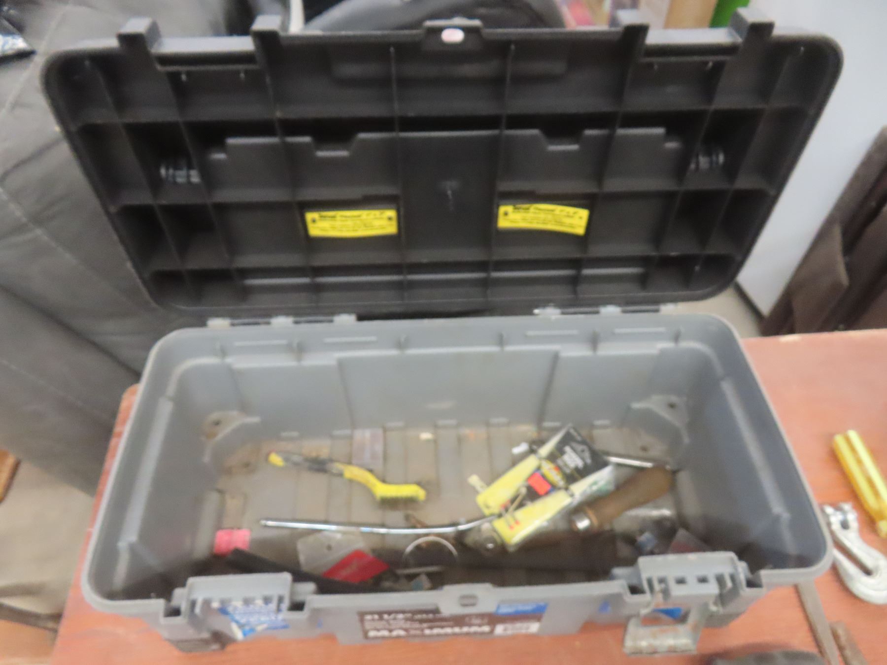Maximum Tool Box with Assorted Tools Including Pliers, Wrenches, Hammer, and Tape Measure – Missing Locking Clasp