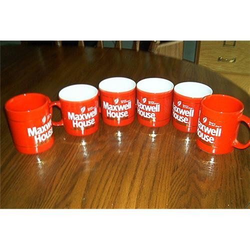Featuring "6" Maxwell House Coffee Cups. Four are a bright red with gold trim and "2" Maxwell House Coffee Cups in a lighter red with: JAPAN in black on the bottom. The bottom of the other "4" cups are embossed with MADE IN ENGLAND and FPC. All cups are beautifully decorated with gold trim. Also, they all have printed in gold: Good To The Last Drop. Includes a stand for all six of them. One of the "Made In England has a handle that has been reguled at one time. Otherwise, all the other cups are in excellent condition.