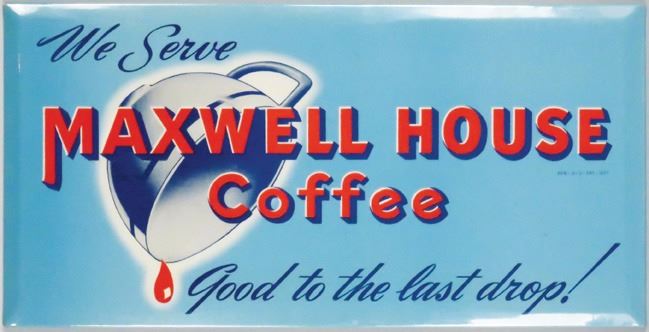 Maxwell House Coffee Beveled Tin over Cardboard Sign. Near Mint. Approx. 12 X 7 Inches.
