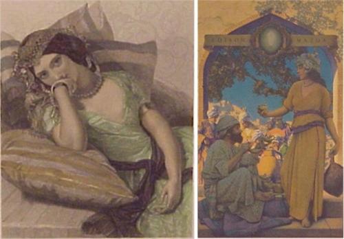 Maxwell Parrish; 19th Century School (two), THE LAMP SELLER OF BAGDAD from the Edison calendar,...