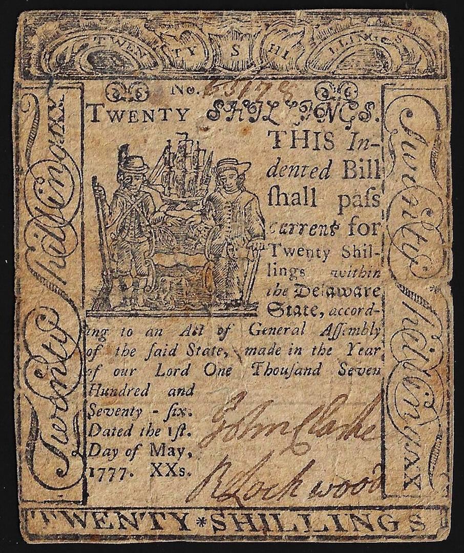 May 1, 1777 Twenty Shillings Delaware Colonial Currency Note