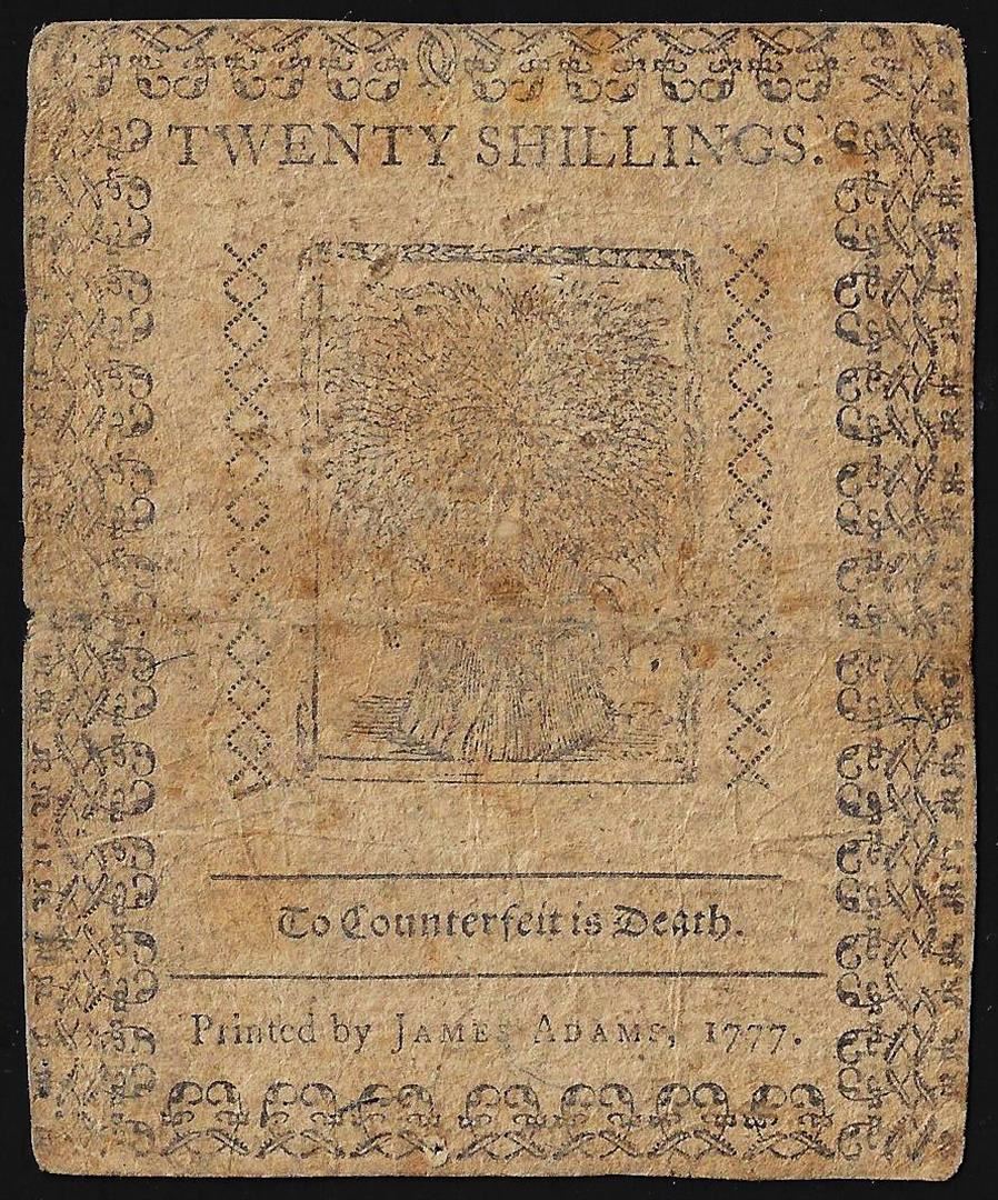 One May 1, 1777 Twenty Shillings Delaware Colonial Currency Note.