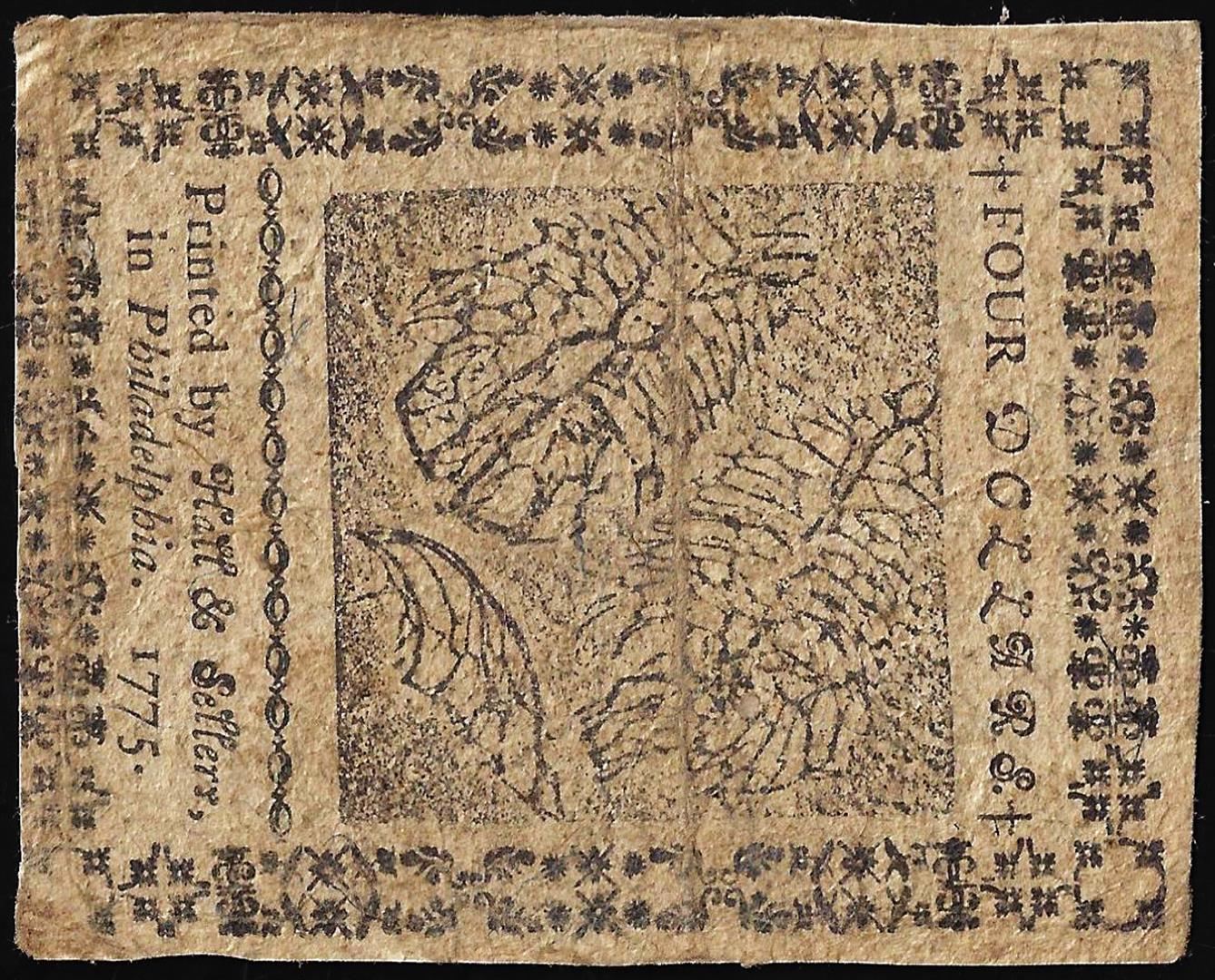 One May 10, 1775 $4 Continental Currency Note CC-4.