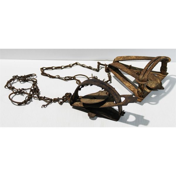 2 VINTAGE TRAPS VICTOR LEG HOLD & SIZE 0 DUAL SPRING