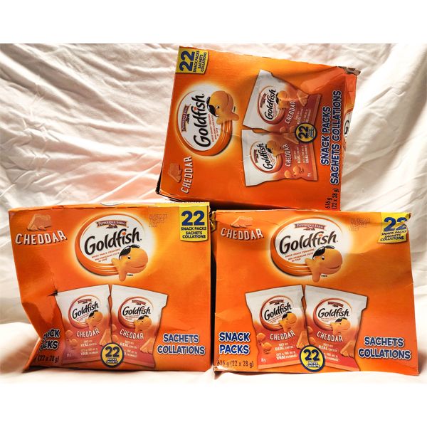 3 BOXES DAMAGE GOLDFISH 22X28G SNACK PACKS