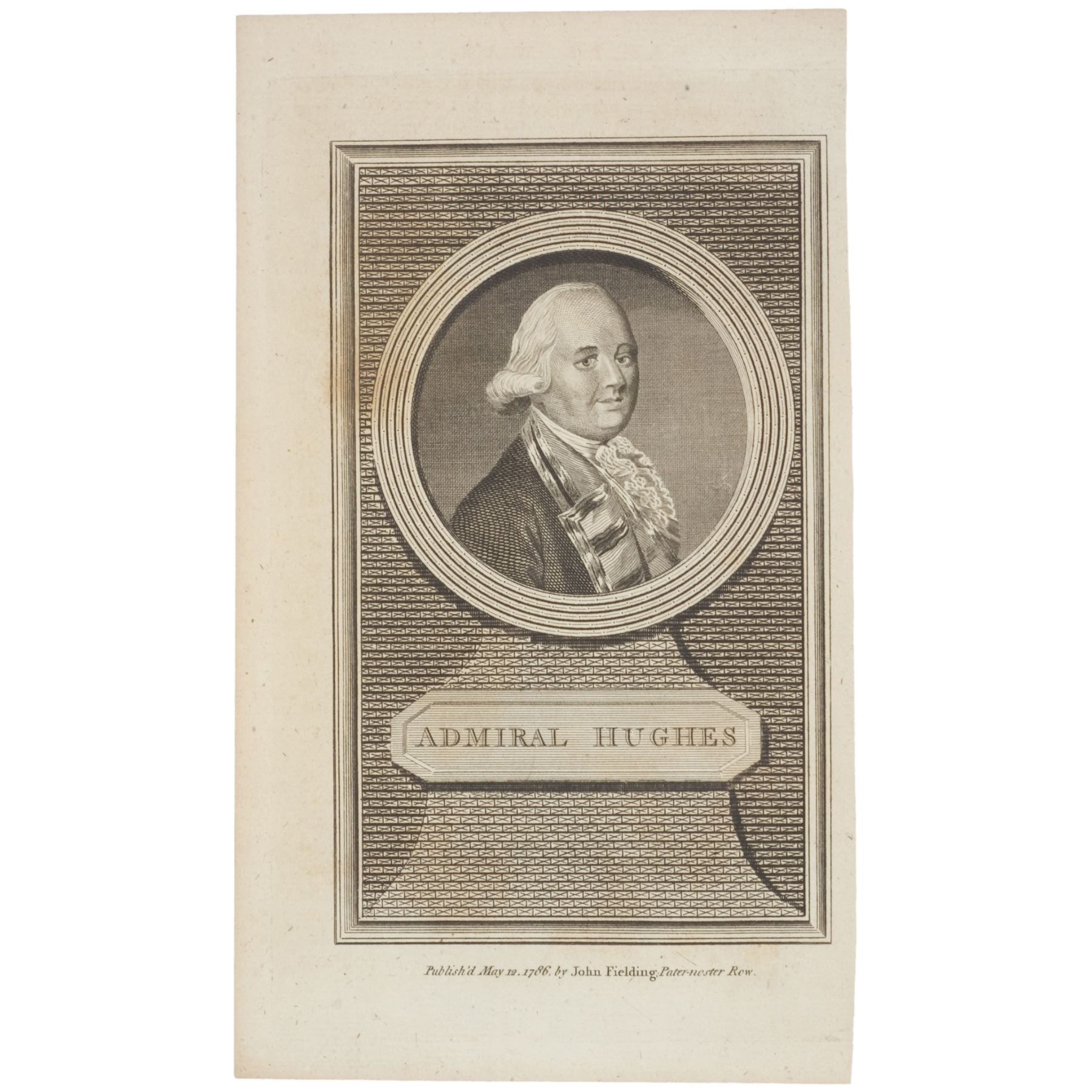 May 12, 1786-Dated, Engraved Portrait of British Admiral Sir Edward Hughes, Historic Revolutionary War Era Military Figure, Published by J. Fielding, London, 1786, Choice Crisp Mint.