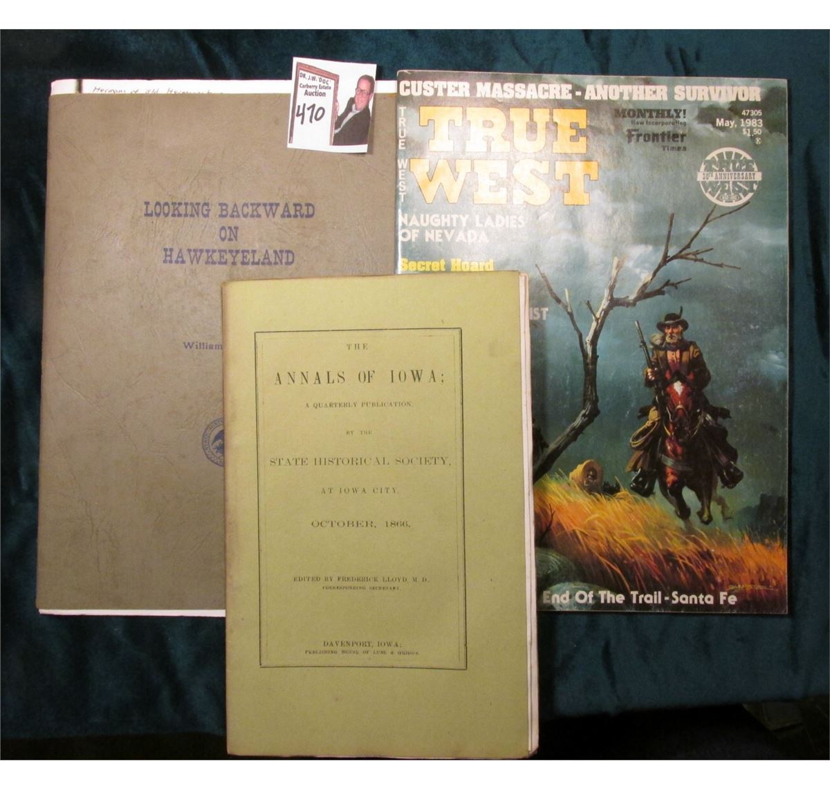 May, 1983 "True West" Magazine; "The Annals of Iowa; A Quarterly Publication, by the State Historical Society, at Iowa City. July, 1866, which includes a Steel Engraving of Union Army General Crocker; & "Looking Backward on Hawkeyeland", by William j. Petersen, State Historical Society, (1947 era).