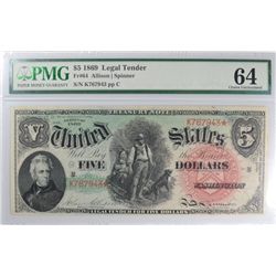 1869 $5 US LEGAL TENDER NOTE PMG 64 RARE146 - 1869 $5 US LEGAL TENDER NOTE PMG 64 RARE